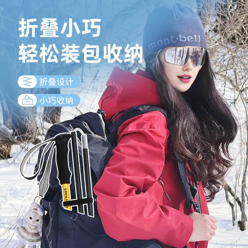 户外登山杖手杖碳素超轻伸缩折叠滑雪防滑拐杖多功能爬山徒步装备