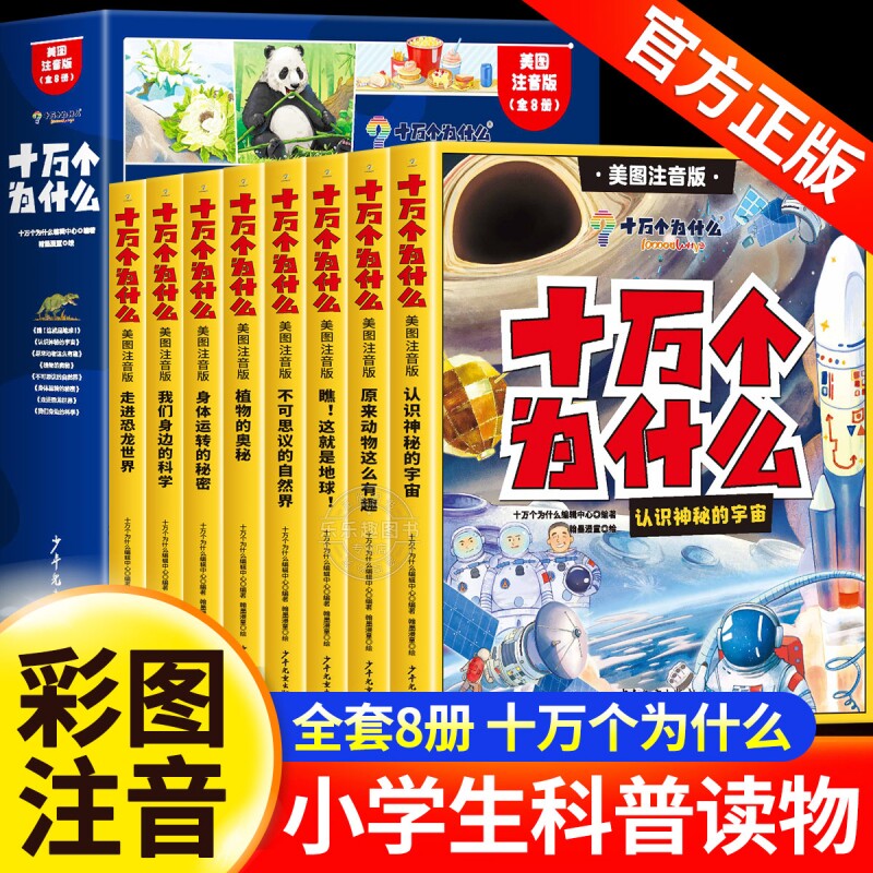 儿童百科全书 十万个为什么注音版礼盒全套8册 一二三四年级必读趣味科普读物6-9-12岁小学生课外书阅读 儿童绘本科普类书籍漫画书