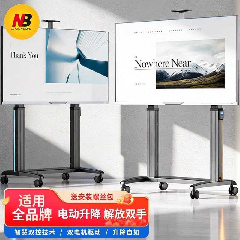 NB T100电动电视推车带轮升降支架移动推车视频会议电动遥控升降