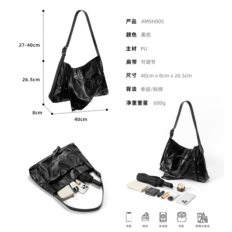 Acynmixx翻领流浪包秋冬通勤斜挎托特包女高级感轻奢hobo包单肩包