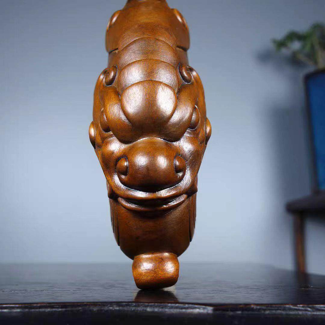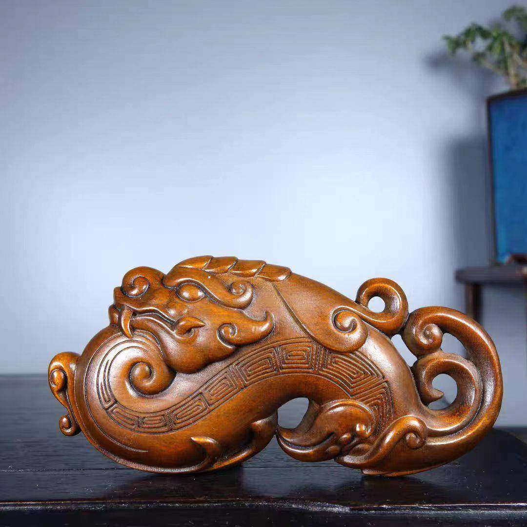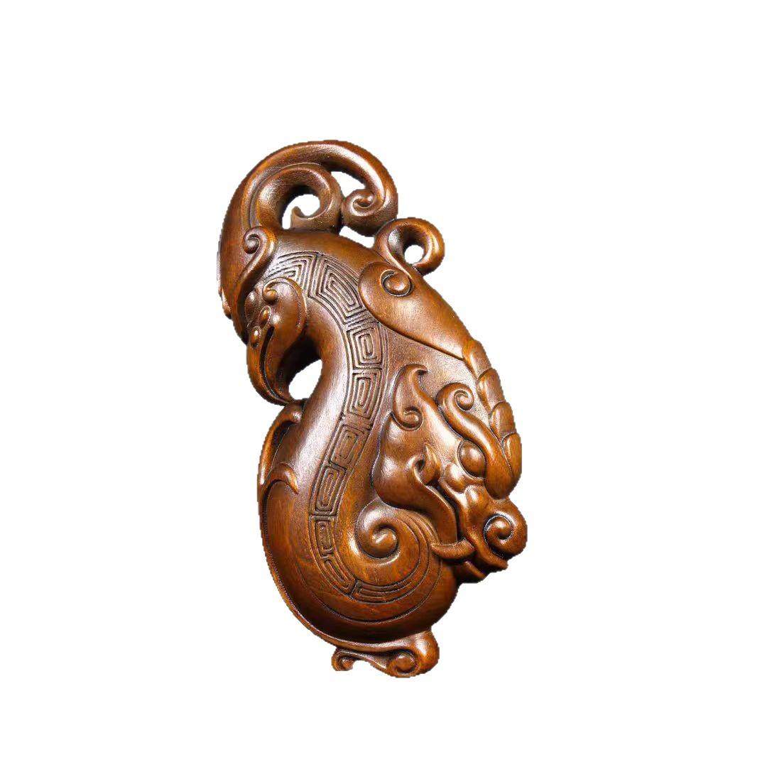 旧藏黄杨木雕刻龙凤呈祥手把件实木随身文玩工艺品龙凤呈祥手把件