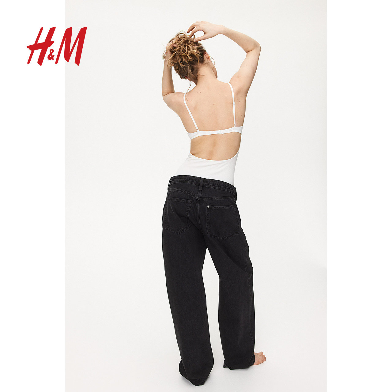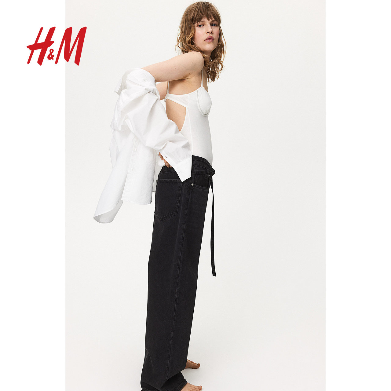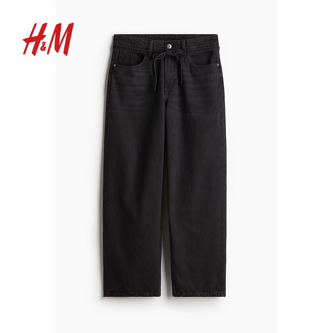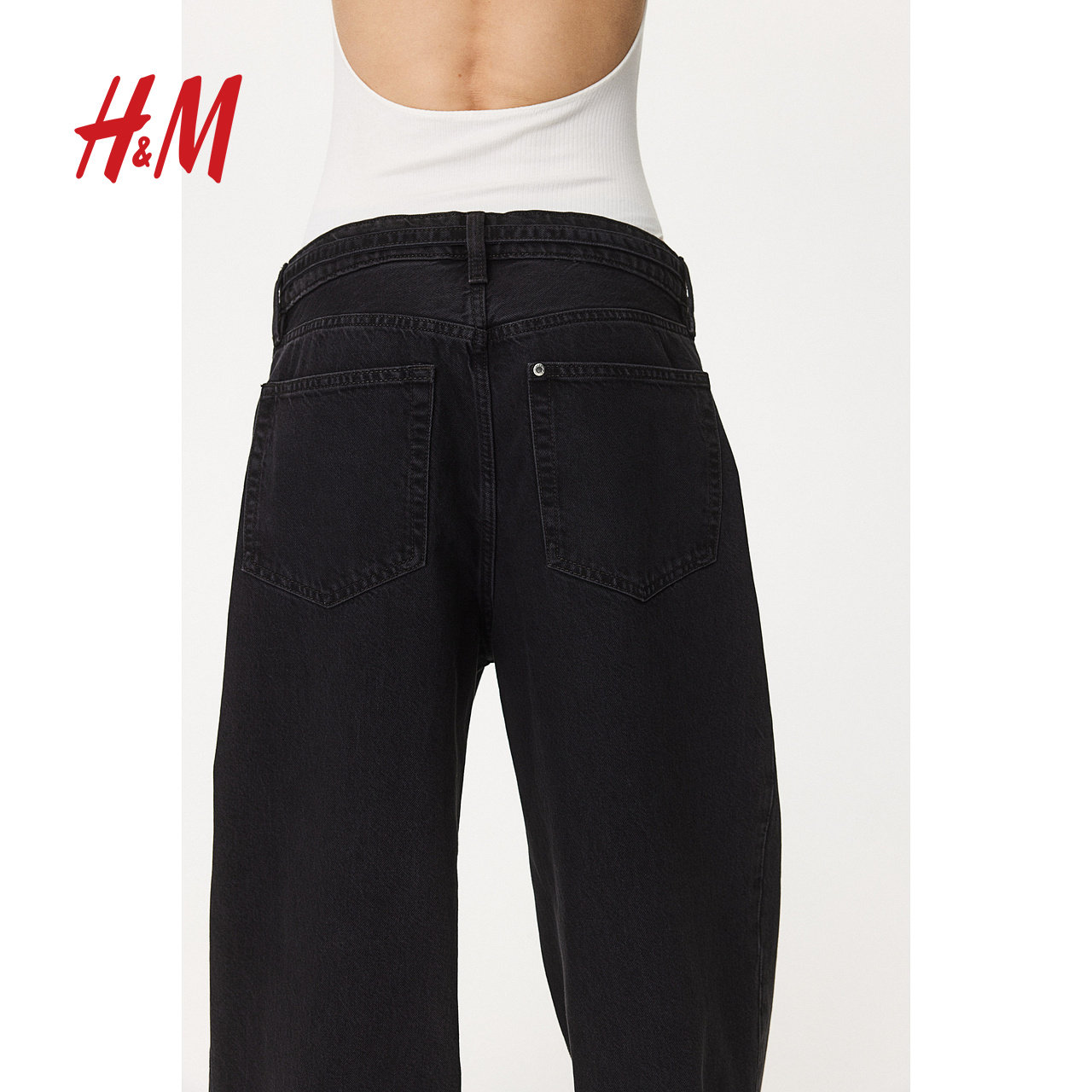 HM女装牛仔裤慵懒牛仔裤直筒宽松低腰及踝设计简约长裤1229034