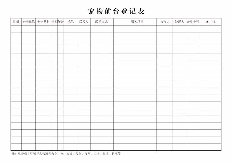 A4宠物前台登记本宠物店接待服务项目记录表册信息明细双面厚