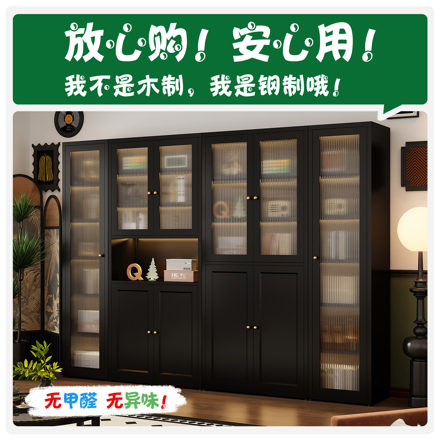 钢制书柜儿童书架落地家用客厅亚克力透明防尘门展示柜储物置物架