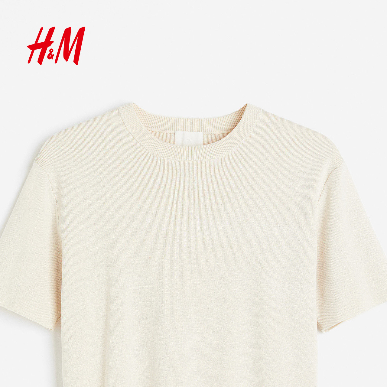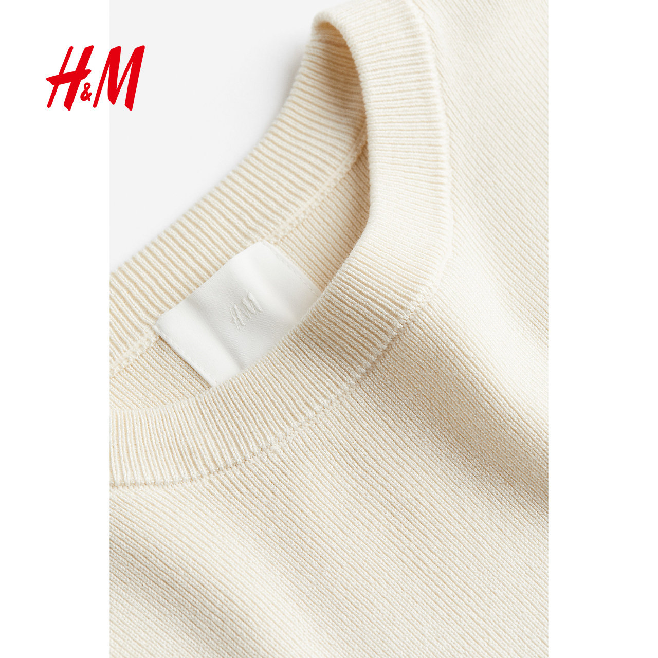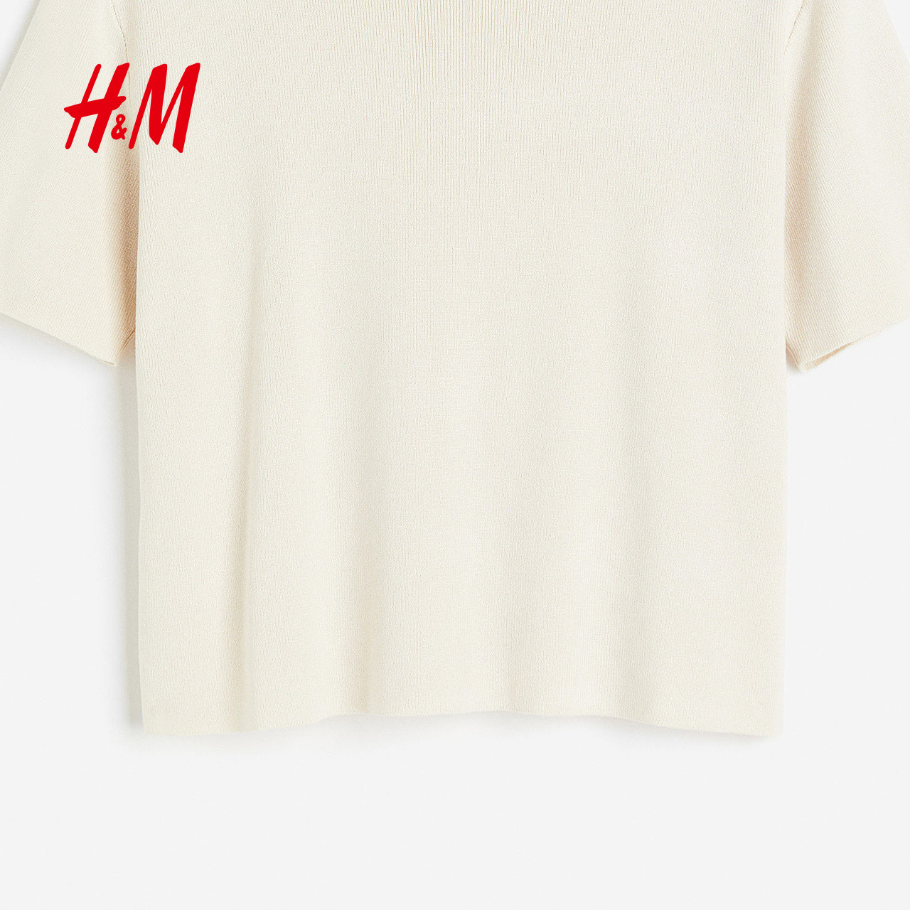 HM女装毛针织衫春季时尚细密圆领短袖内搭红色毛衣短上衣1220582
