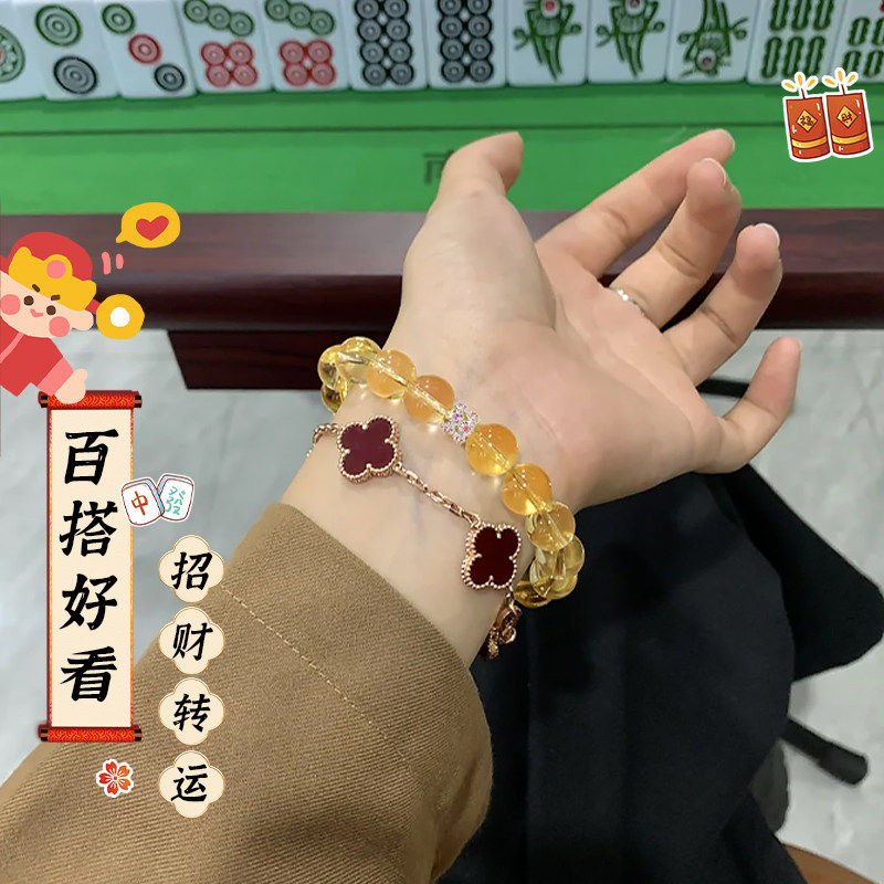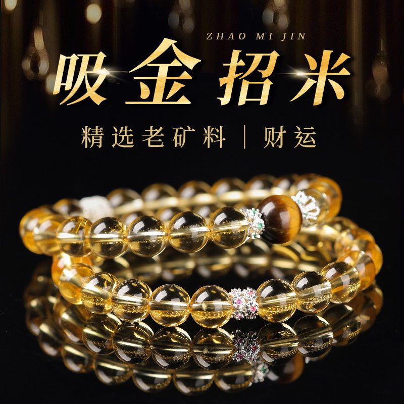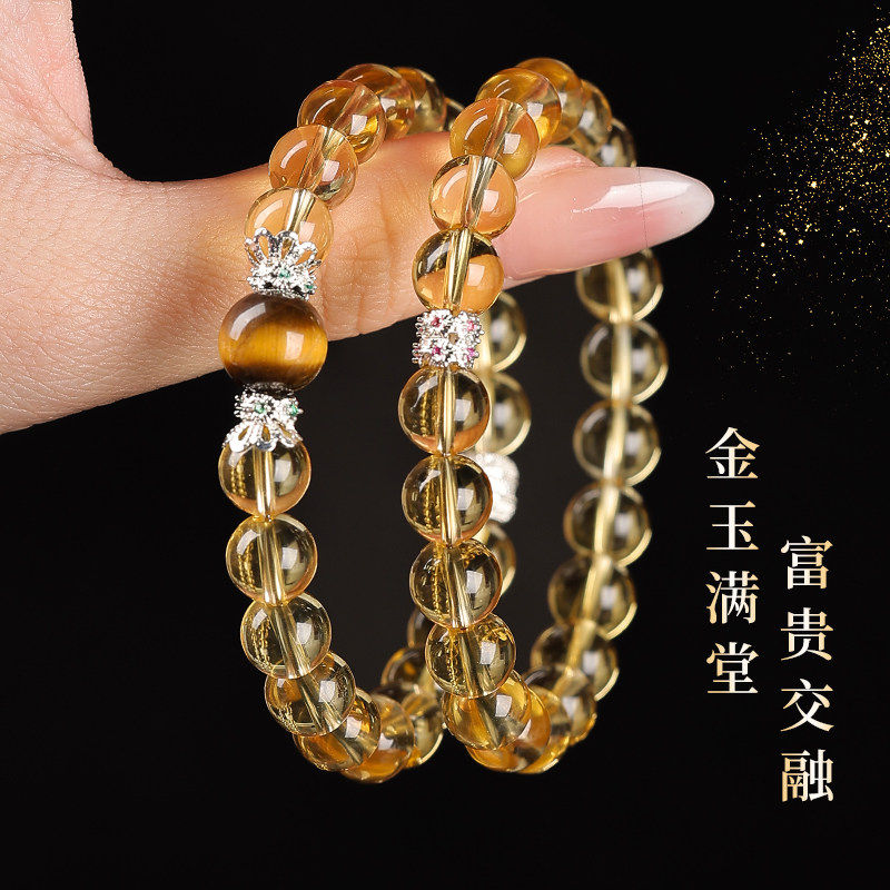 蓝珀天然黄水晶手串礼物黄水晶手链墨西哥金流光金焰男女款