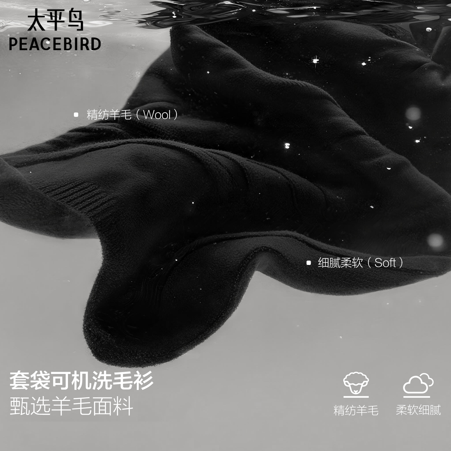 森马毛衫男冬季含羊绒针织衫发热抑菌2025新款基础圆领黑色打底衫