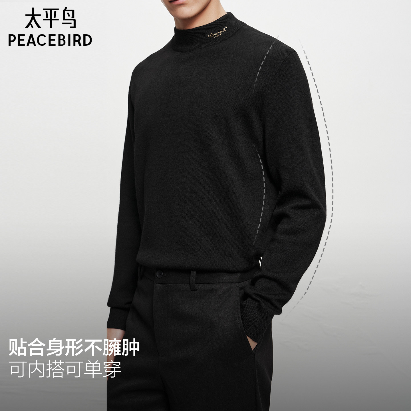太平鸟男装 休闲毛衣半高领羊毛衫潮流休闲可机洗针织修身毛衣男
