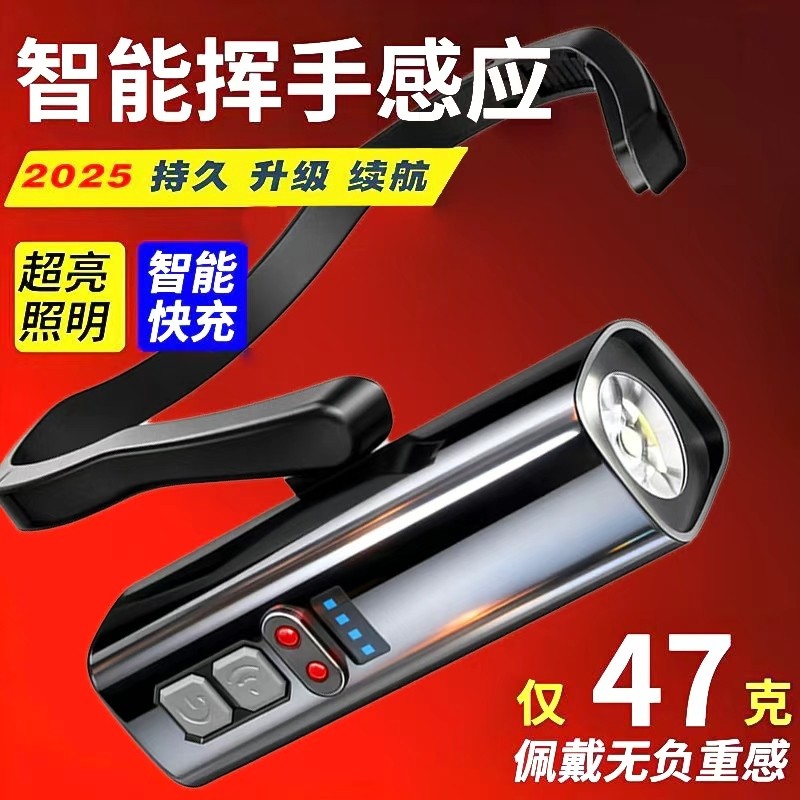 头灯2025新款强光超亮充电头戴式照明灯矿灯户外钓鱼专用感应矿灯