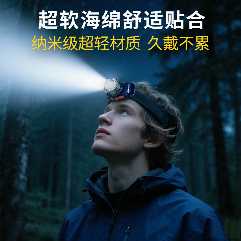 头灯2025新款强光超亮超长续航户外登山钓鱼爆护专用小型头戴式
