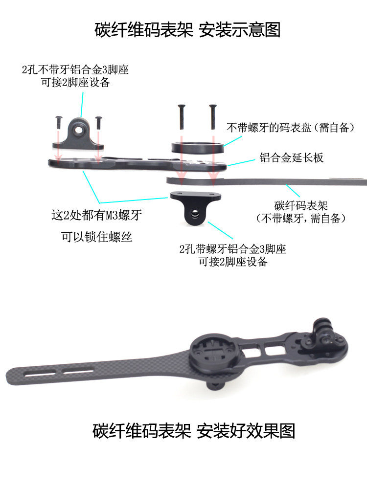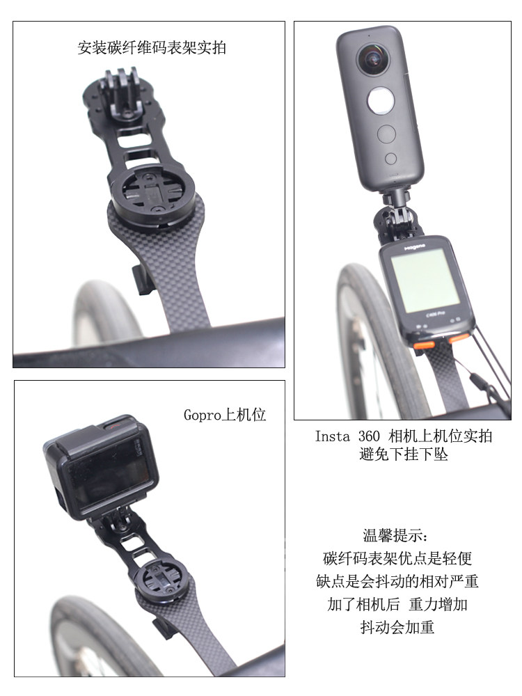 碳纤维码表架 延长板 影石insta 360 X2 X3X4X5运动相机上机位拍摄安装gopro 公路自行车骑行配件