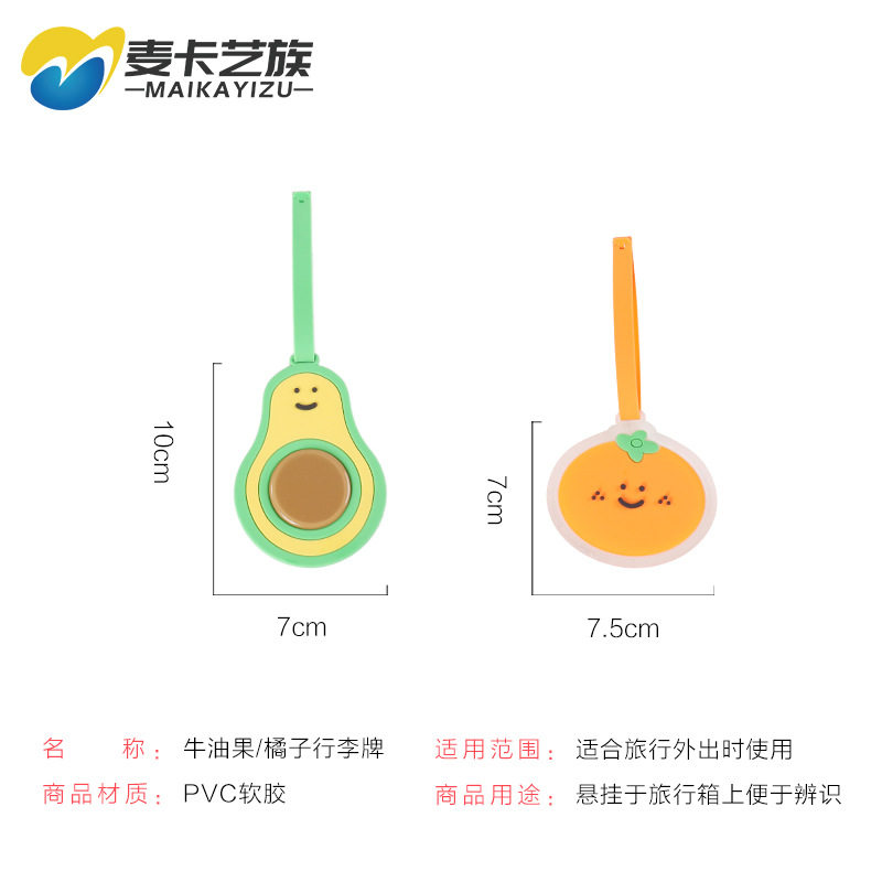新款卡通牛油果行李牌pvc行李牌箱包吊牌登机牌行李牌带挂绳校牌工厂牌钥匙扣卡套一体