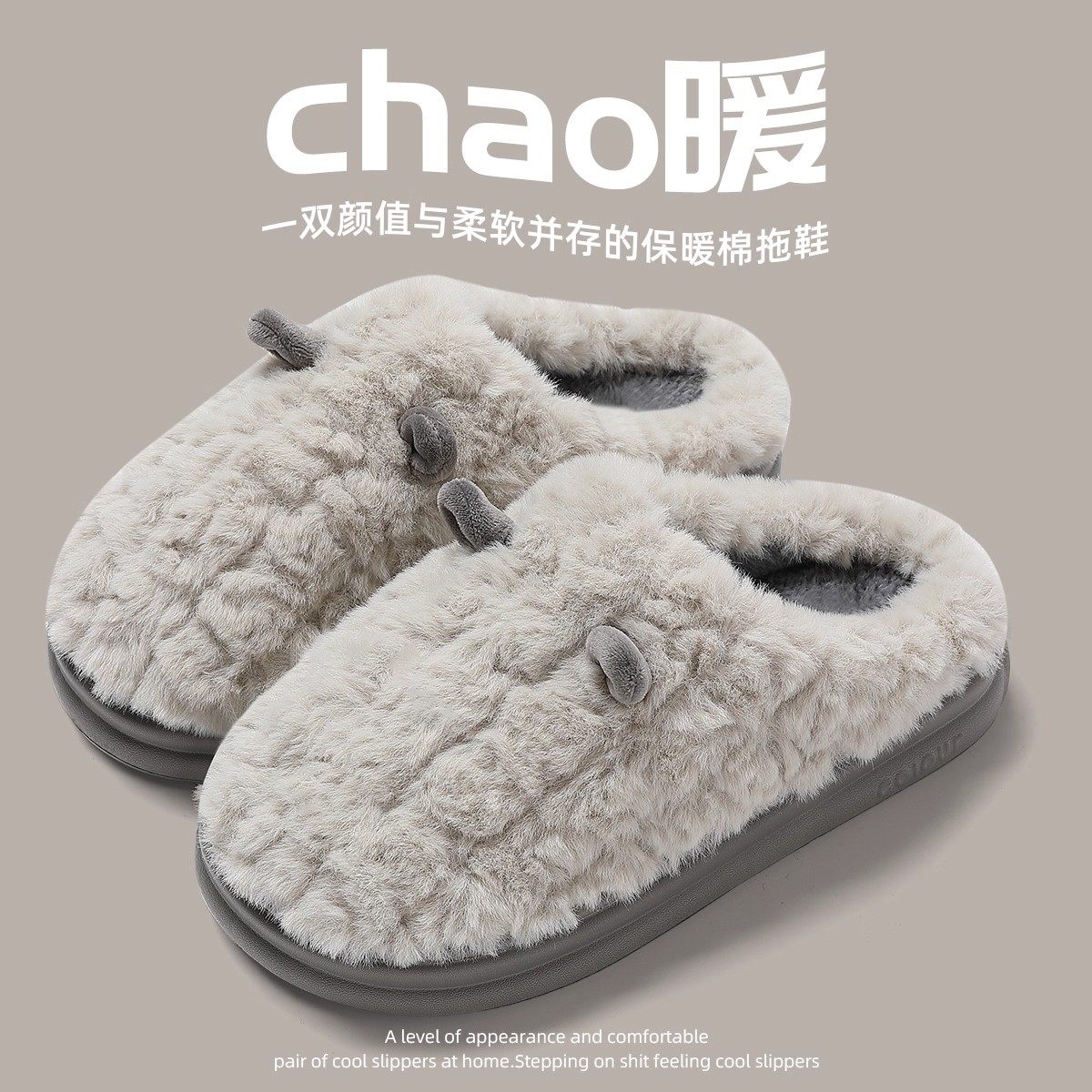 棉拖鞋女款秋冬天2024新款毛拖家居保暖加绒厚底毛绒情侣软底拖鞋