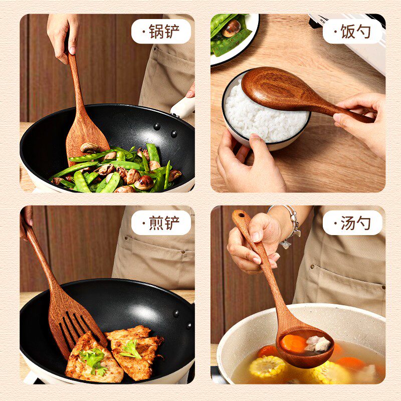 木锅铲烹饪不粘锅专用木质炒菜的铲子家用食品级乌檀木铲木头木制