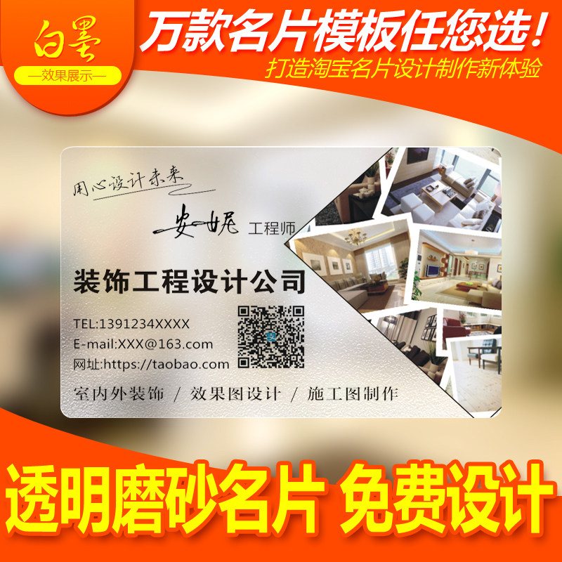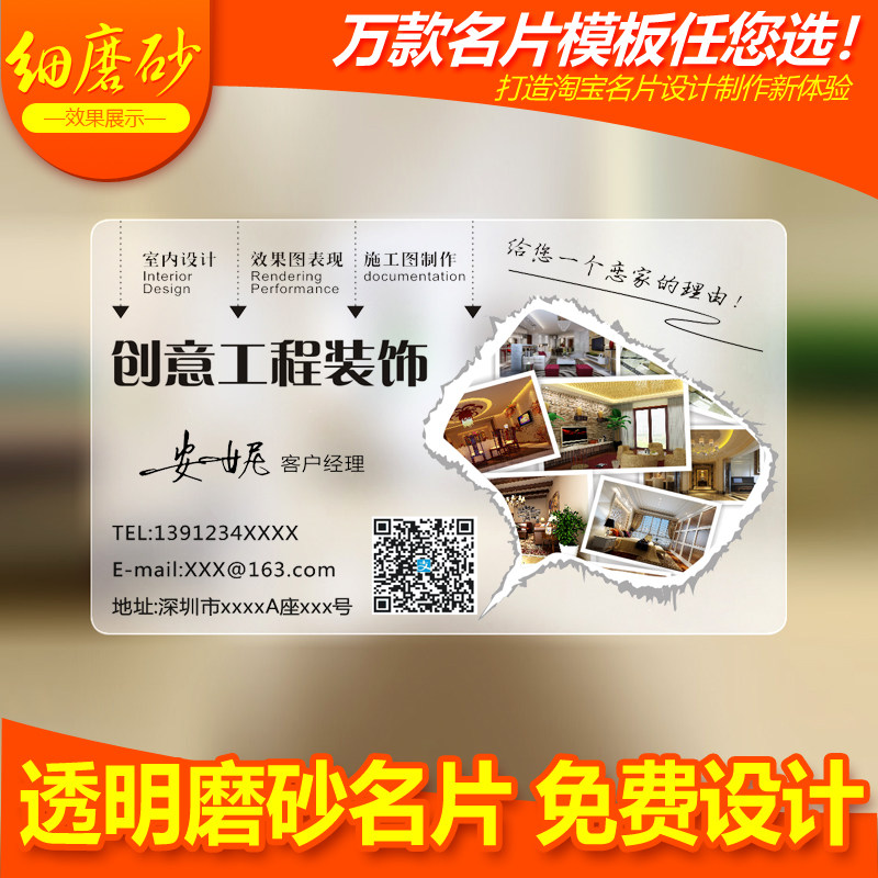 PVC透明名片 k装修装饰公司 室内设计 建筑工程房 地产设计印刷