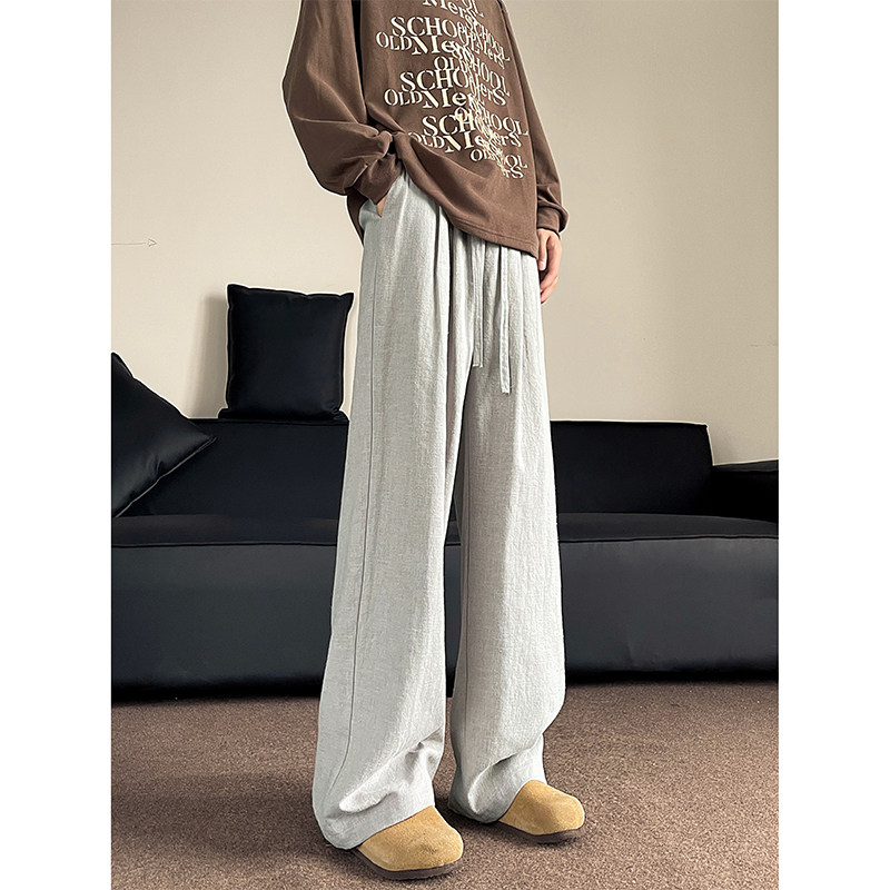 回力棉麻裤子男春秋季2026新款宽松直筒纯棉卫裤男生亚麻休闲长裤