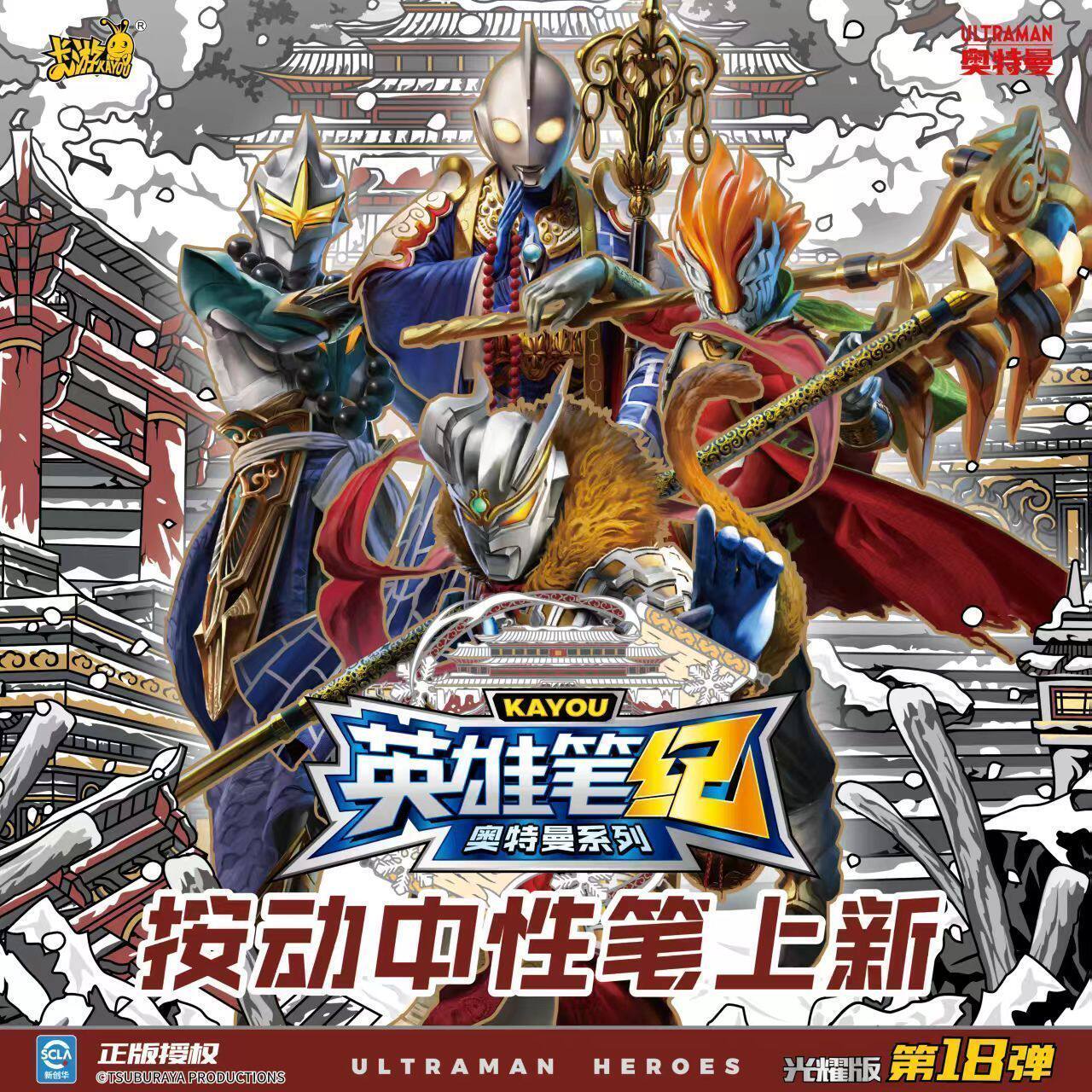 卡游奥特曼中性笔光耀版第18弹英雄笔纪至臻款赛罗卡通笔动漫文具