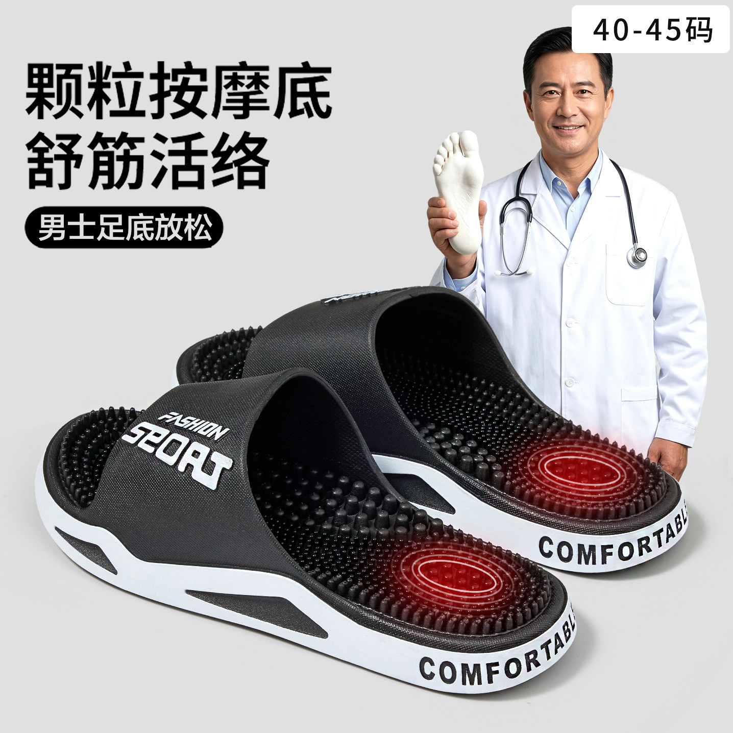 按摩拖鞋男士家居脚底穴位浴室洗澡防滑指压板足疗凉拖鞋男款夏季