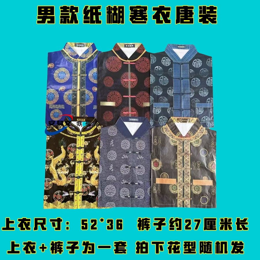 男女唐装寒衣全套一整套纸衣上衣裤子棉衣清明寒衣节烧纸套装金元宝金砖
