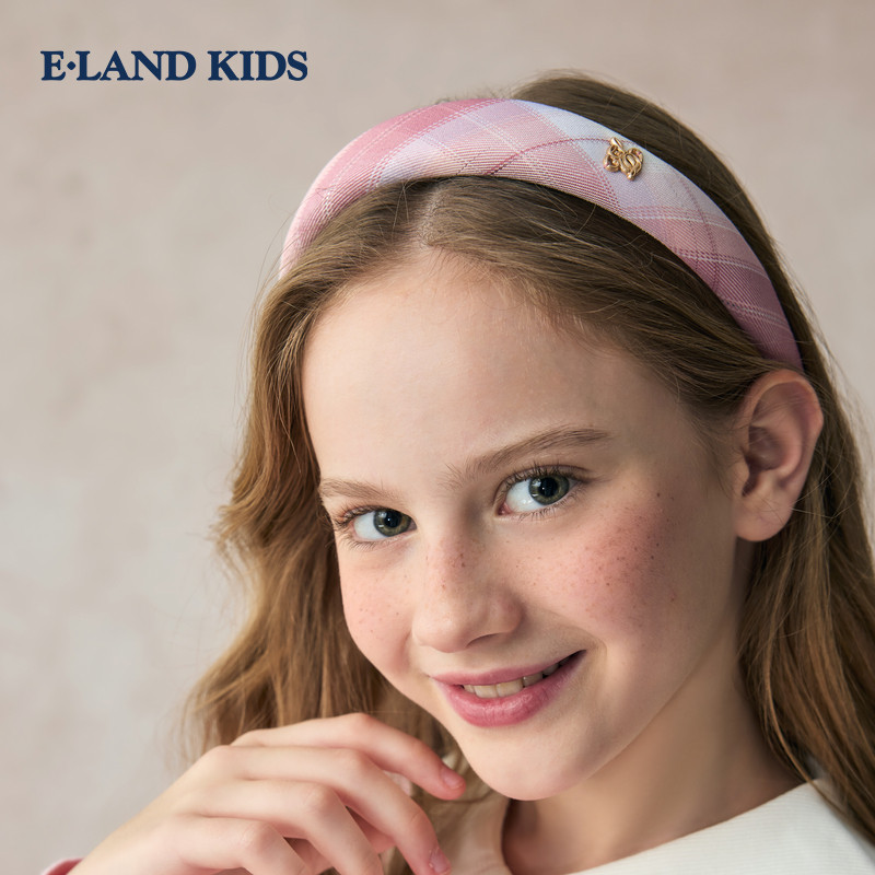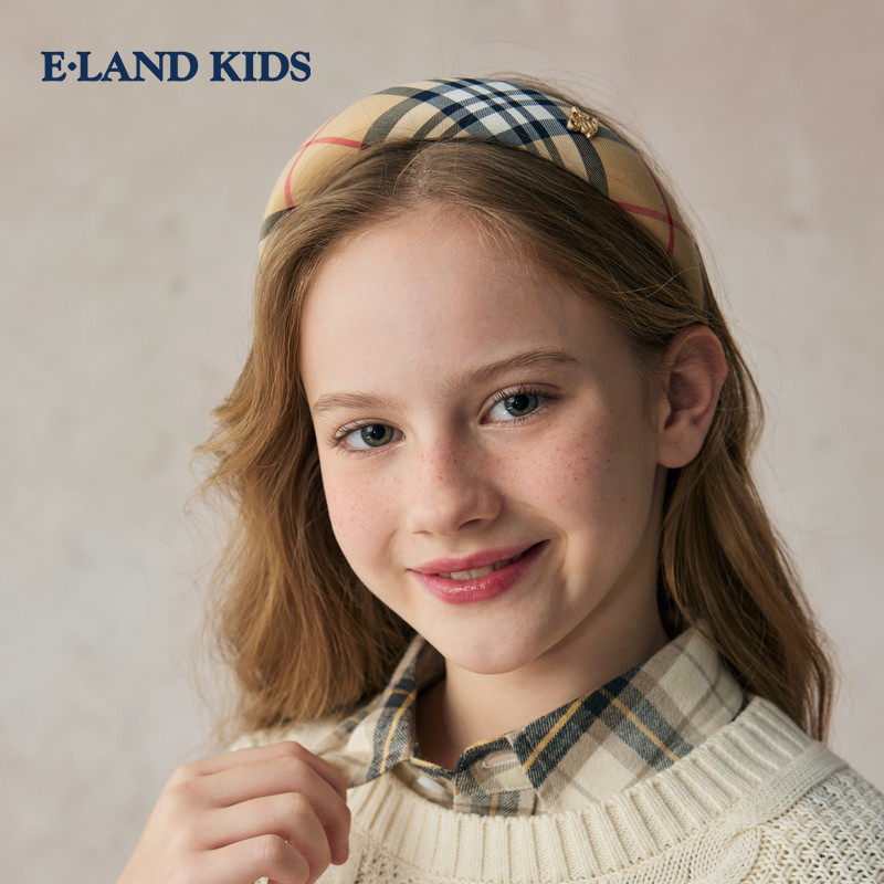 eland kids衣恋童装女童发箍2025年春夏新品复古英伦格纹学院头箍