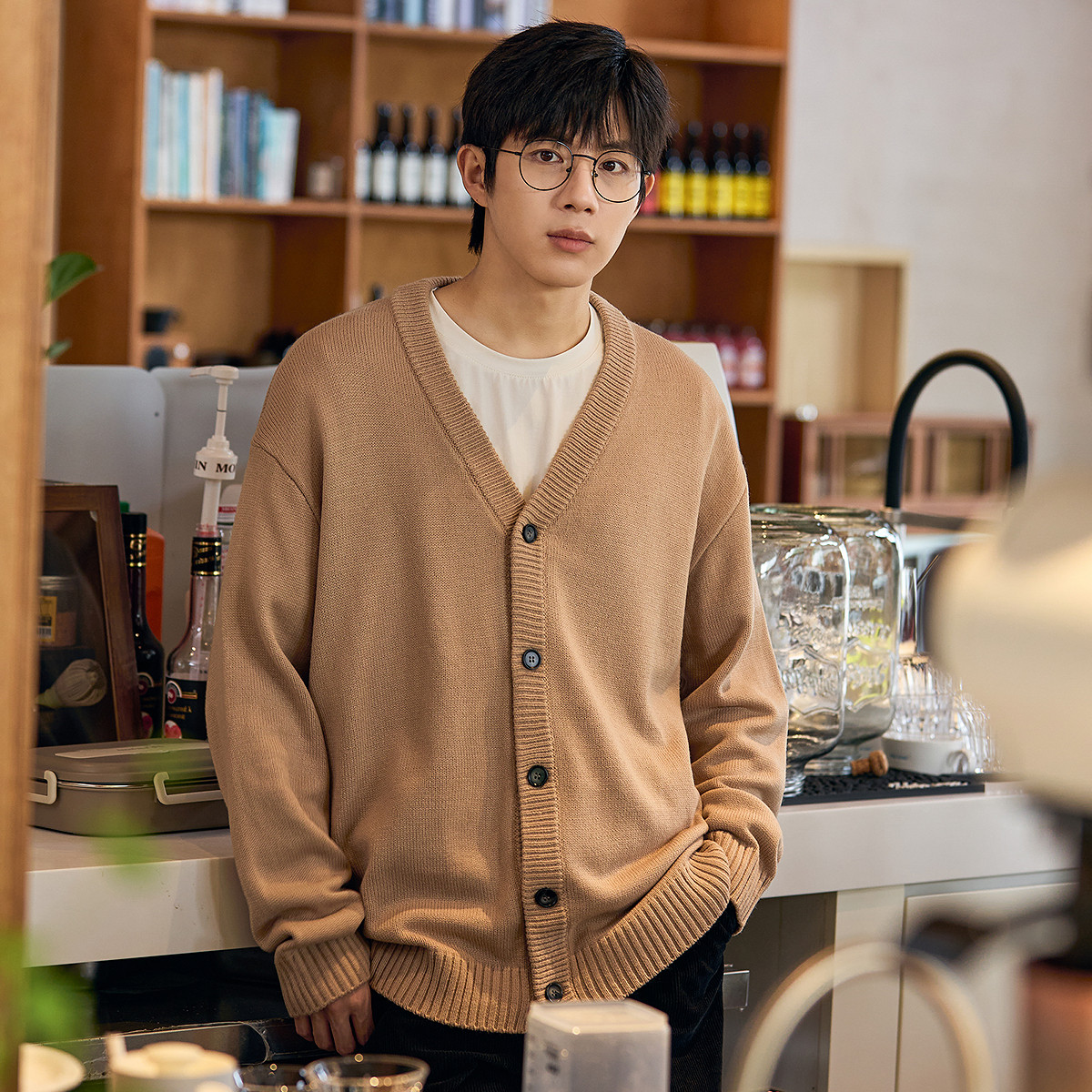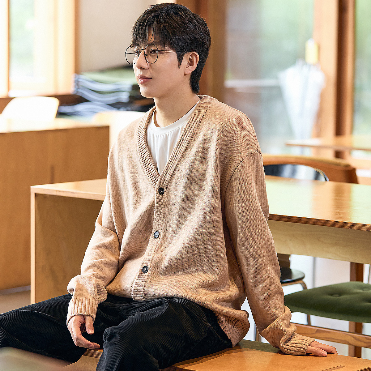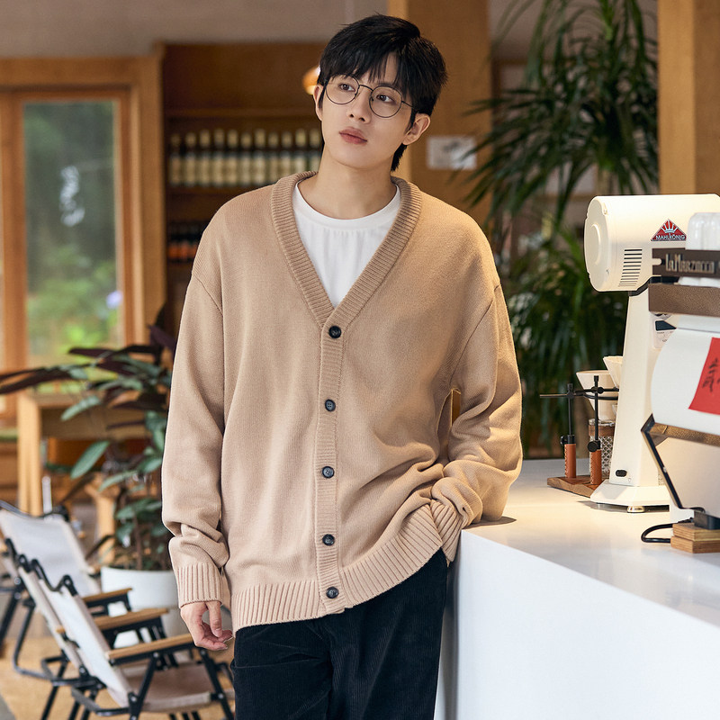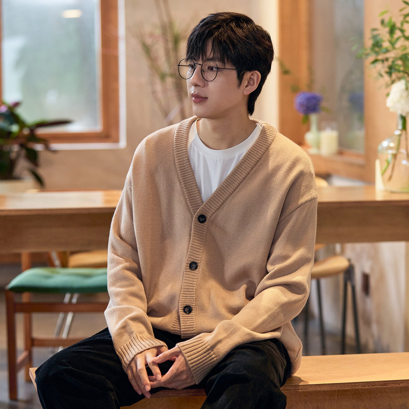 唐狮秋冬季新款v领毛衣针织开衫男生韩系休闲薄外套宽松百搭TE
