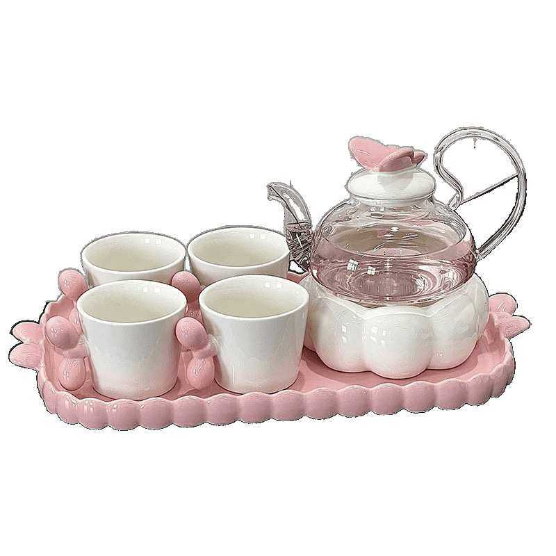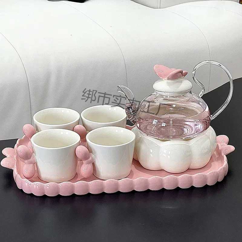 2025新款高颜值玻璃花茶壶套装花草水果茶具蜡烛加热下午茶