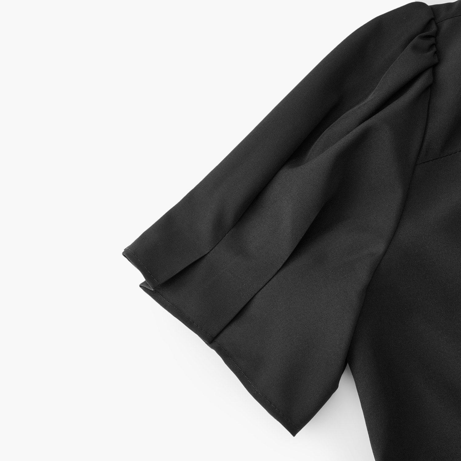 【热销补货】欧时力 褶皱短袖连衣裙女2026春新款收腰显瘦小黑裙