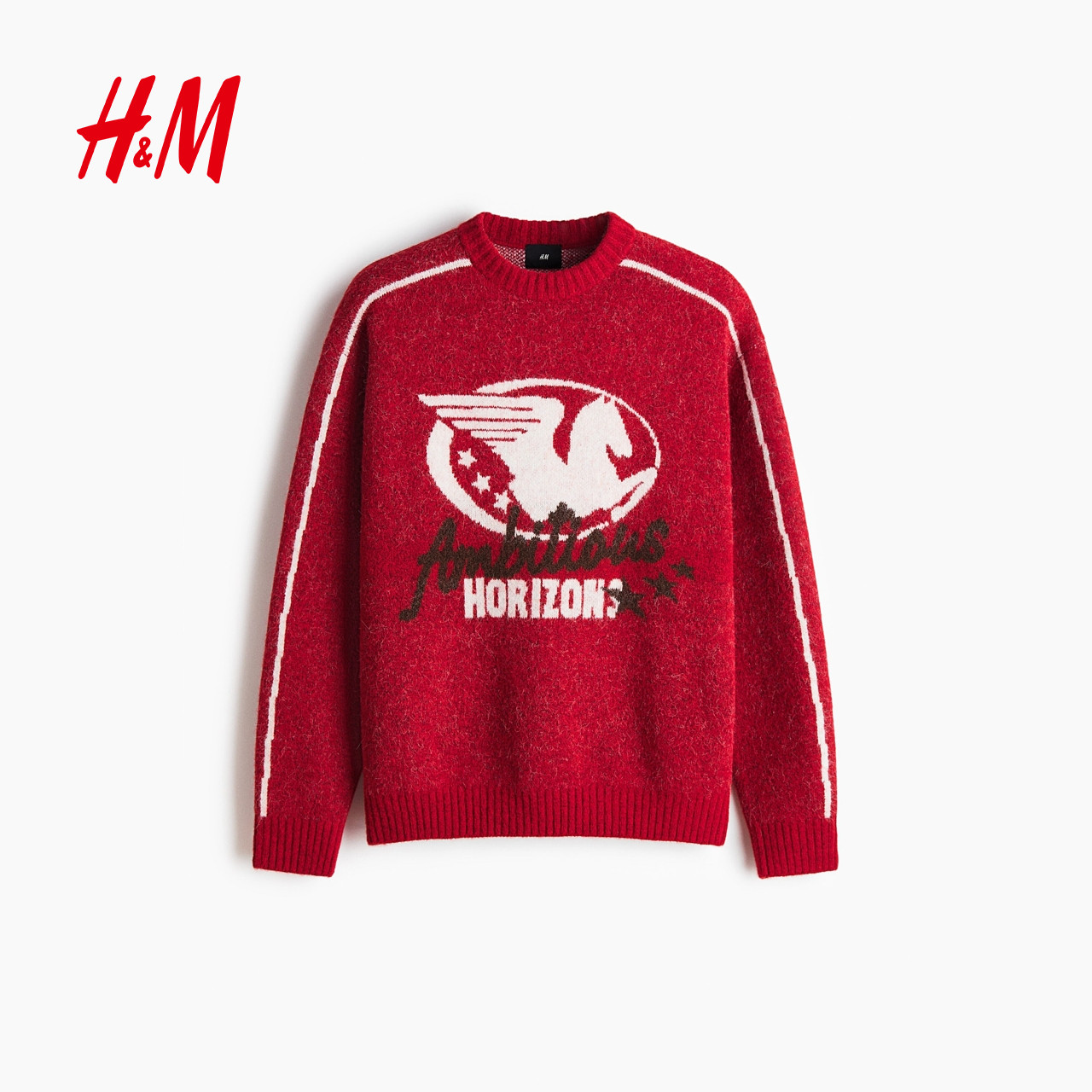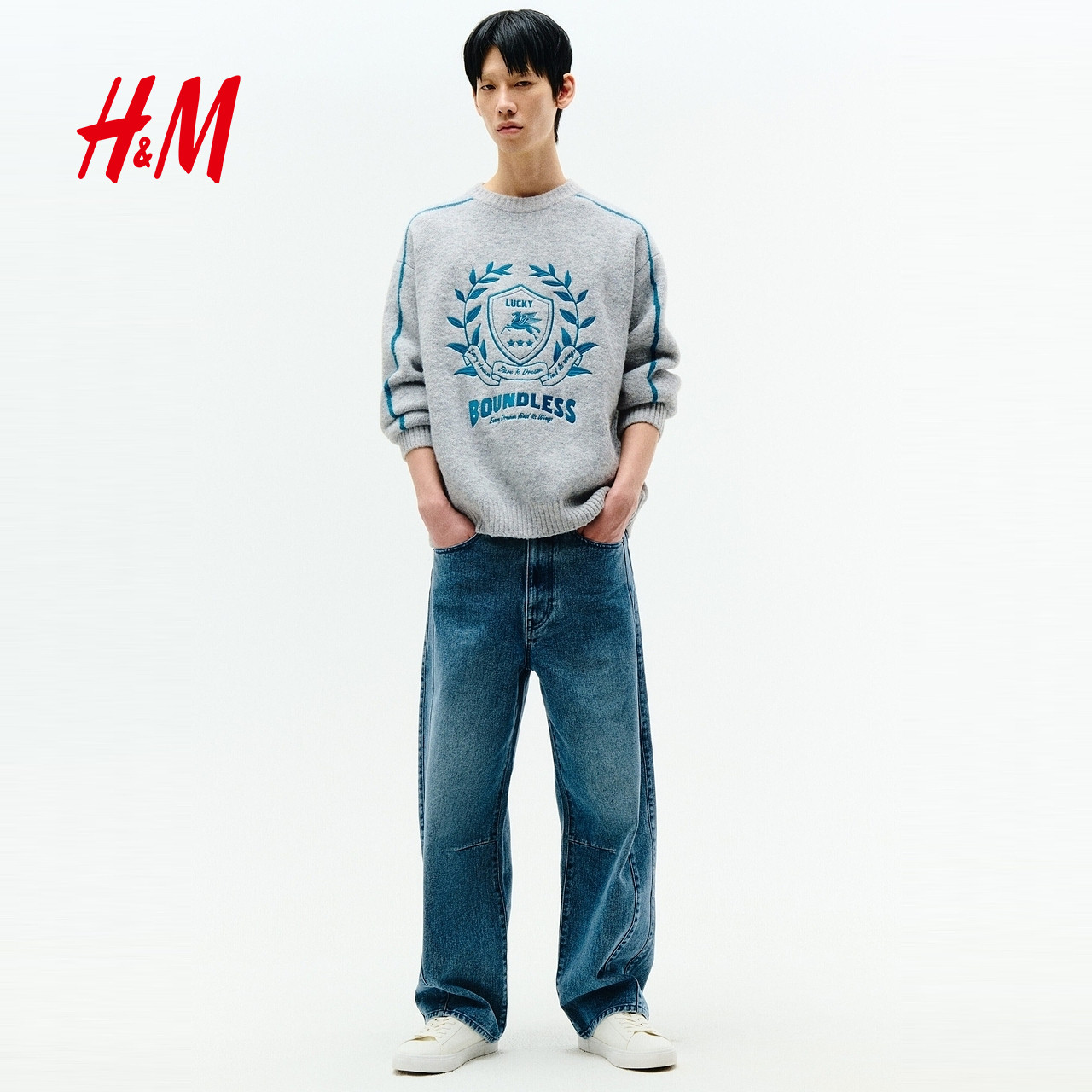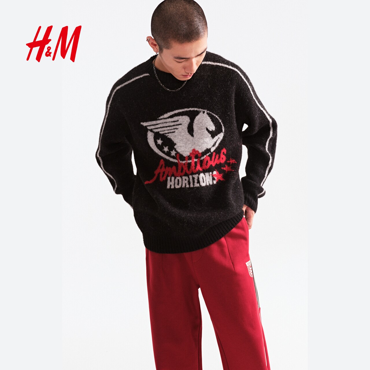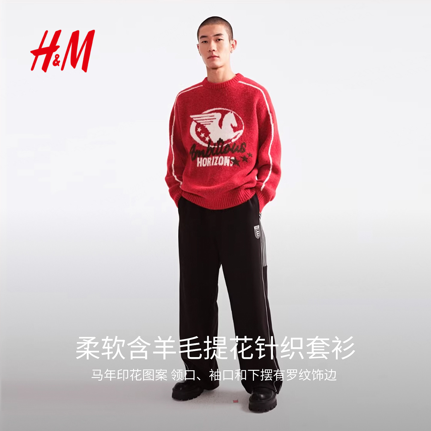HM男装毛衣2026春季新款户外出游宽松提花圆领针织套衫1307984