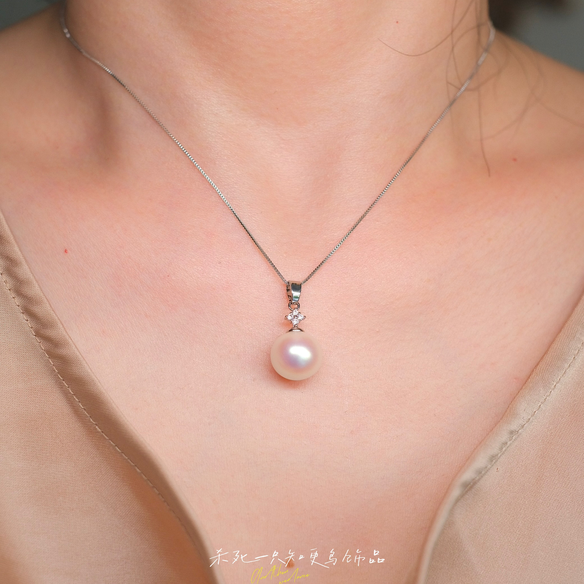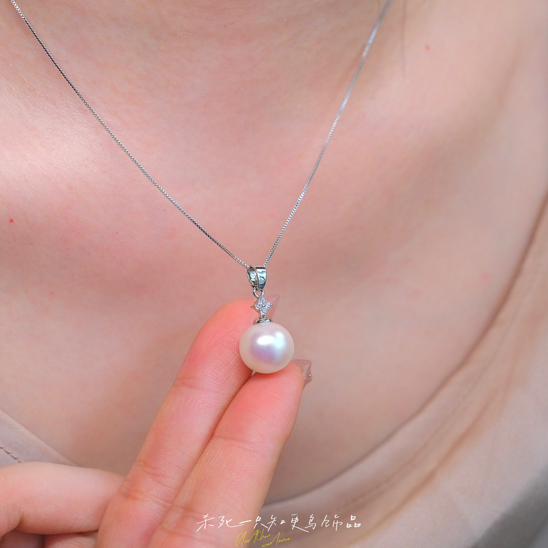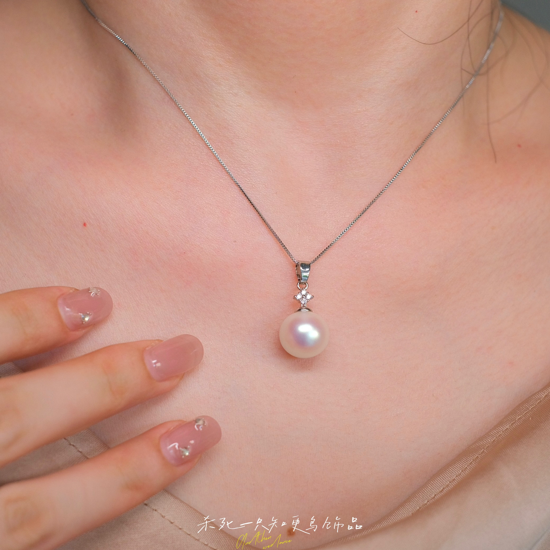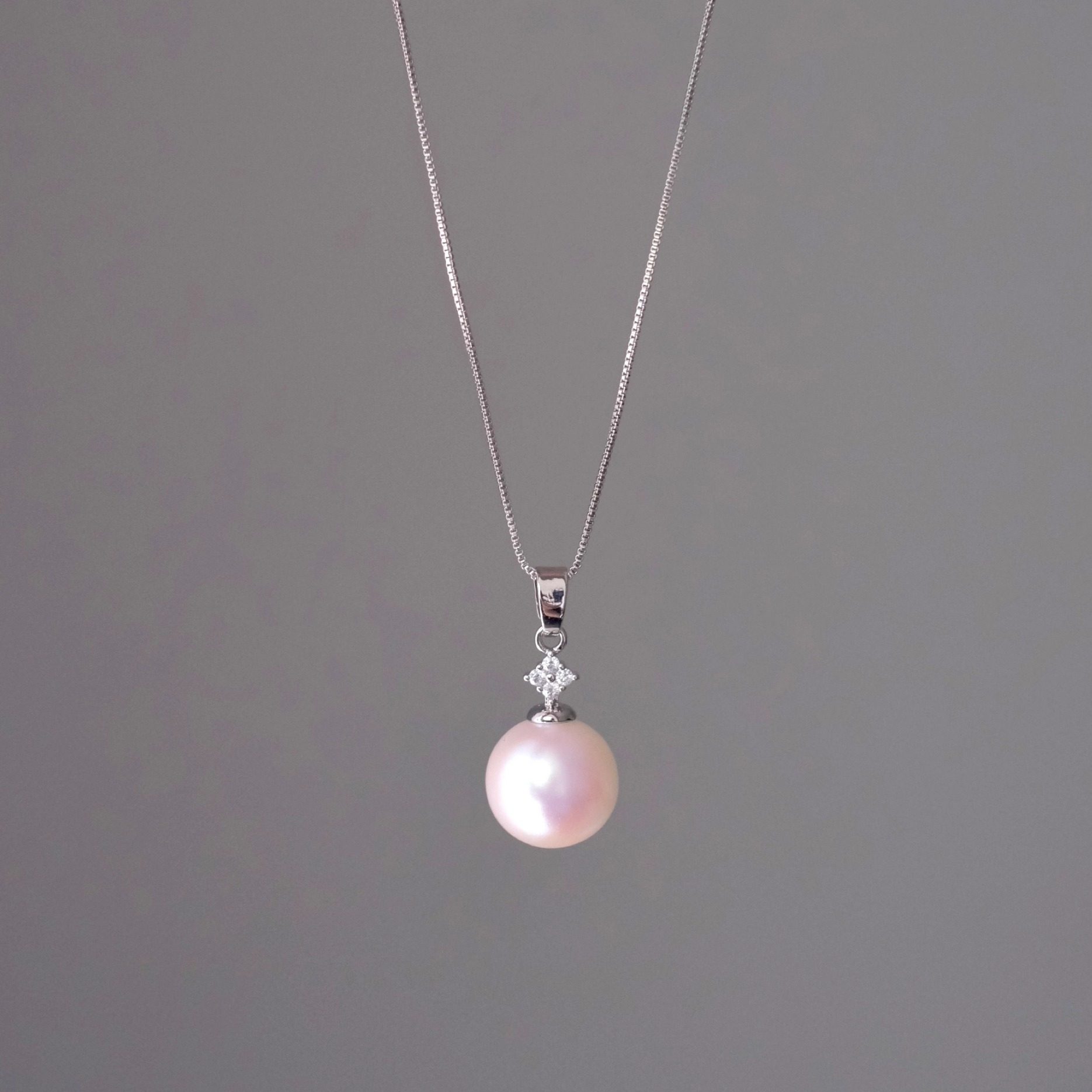 《霜降》法式复古轻奢高级感气质单颗粉光珍珠吊坠项链锁骨链女生