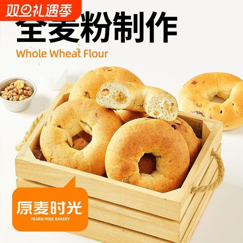 原麦时光全麦贝果面包大学生早餐面包圈现做现发手工制作现做现发