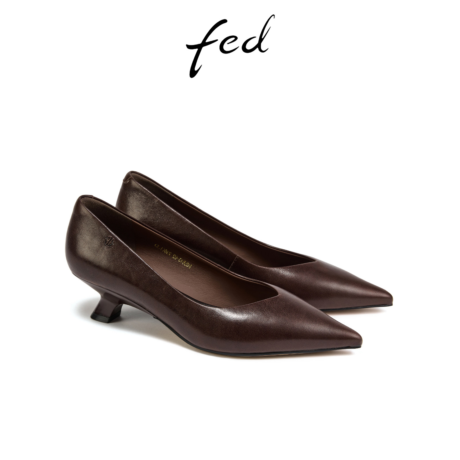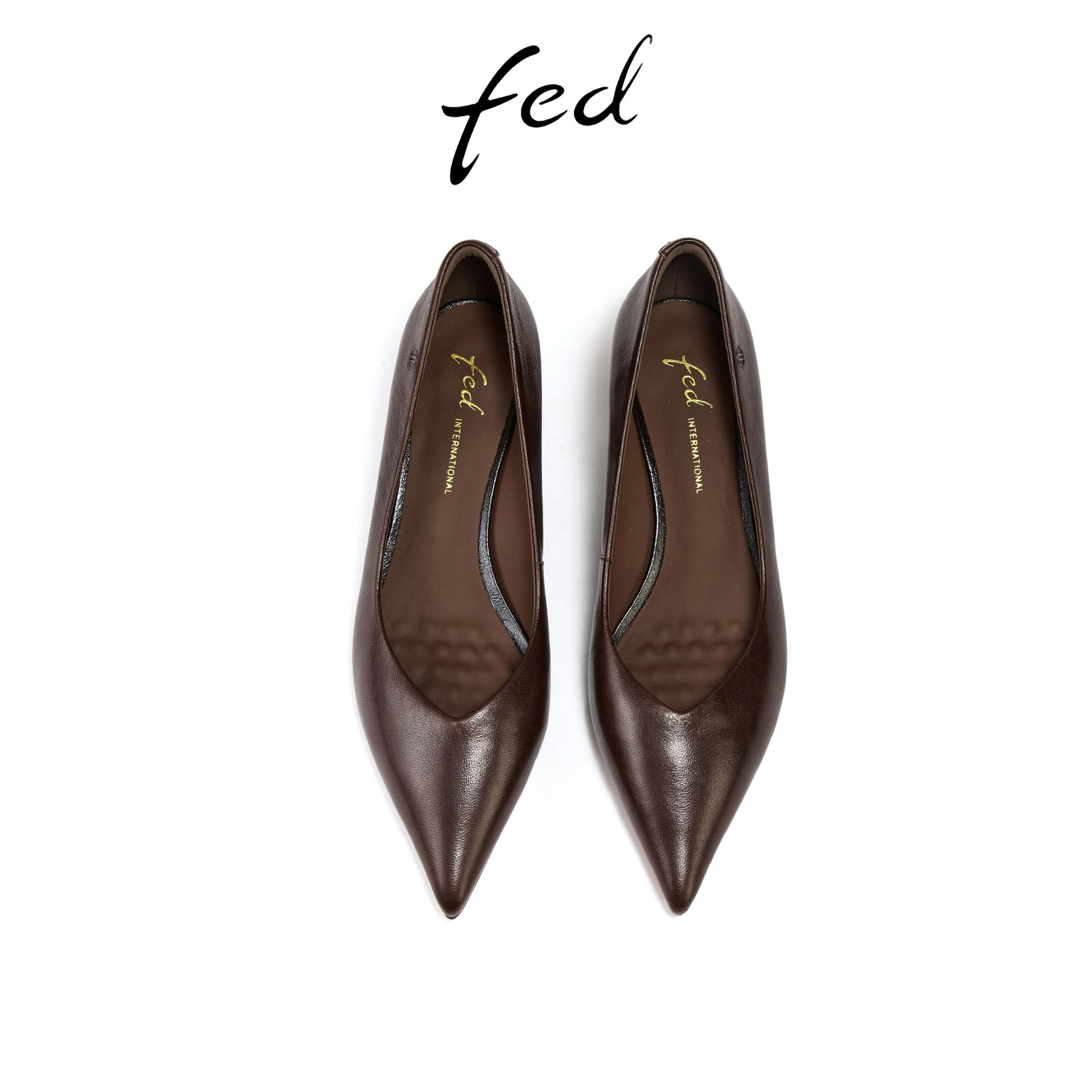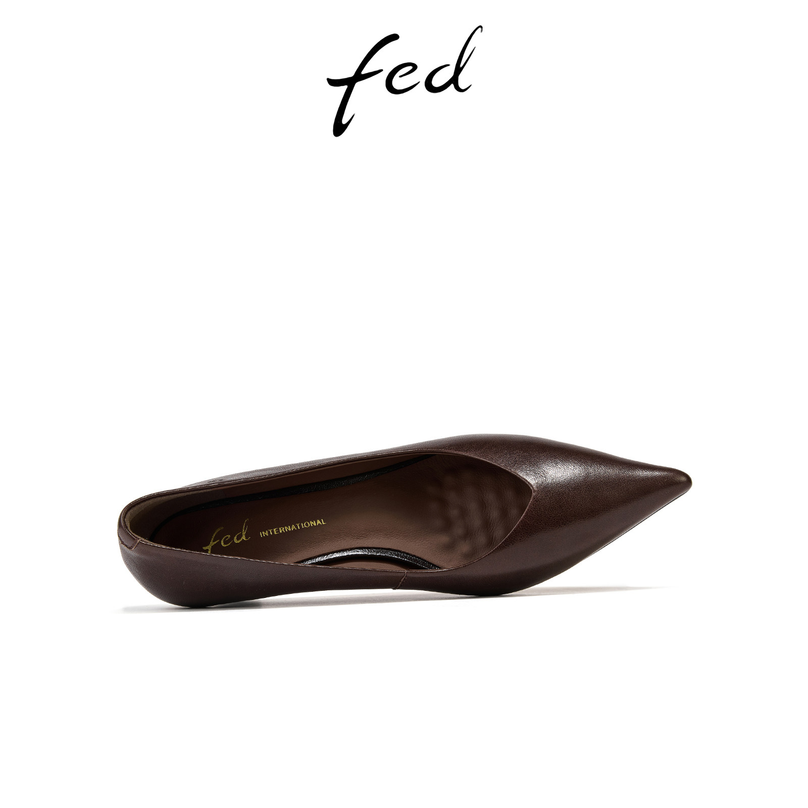 fed低跟单鞋秋季新款女鞋V口羊皮高跟鞋气质通勤鞋女S0820-ZCA513