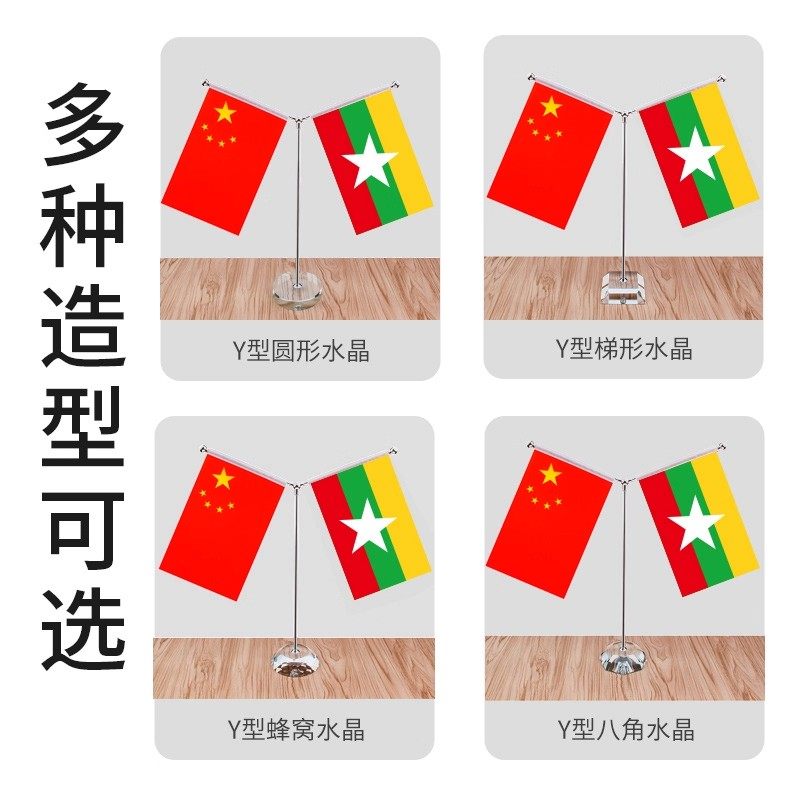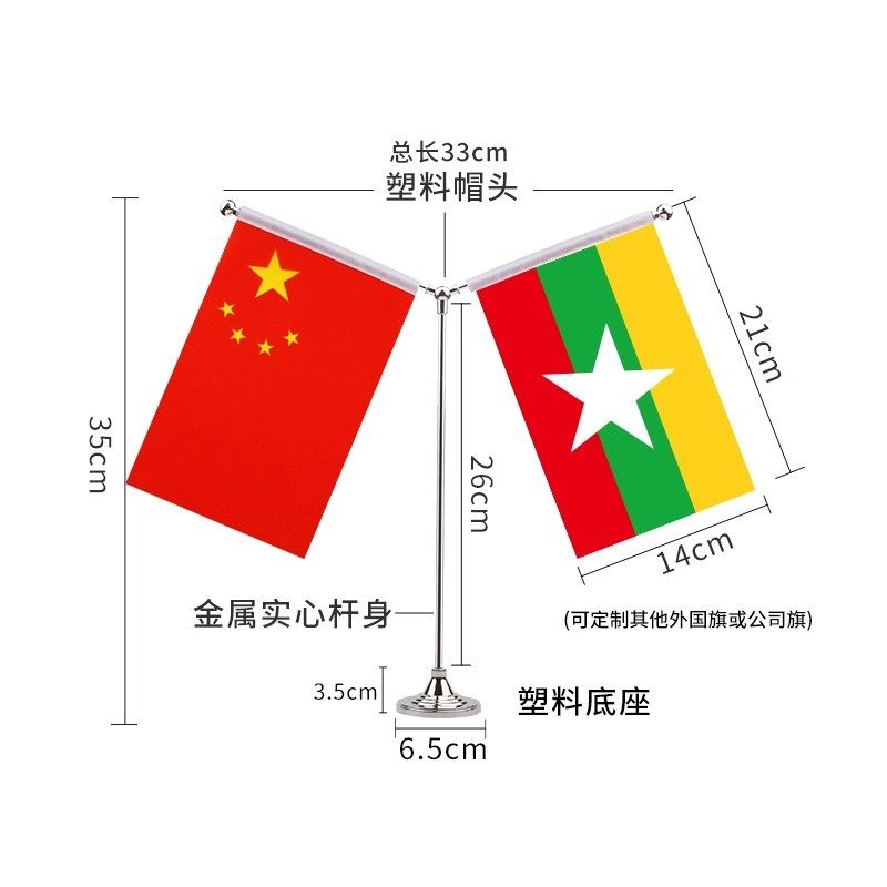 中国缅甸桌旗Y型国旗摆件签约旗办公室定制会议室面装饰支架双杆