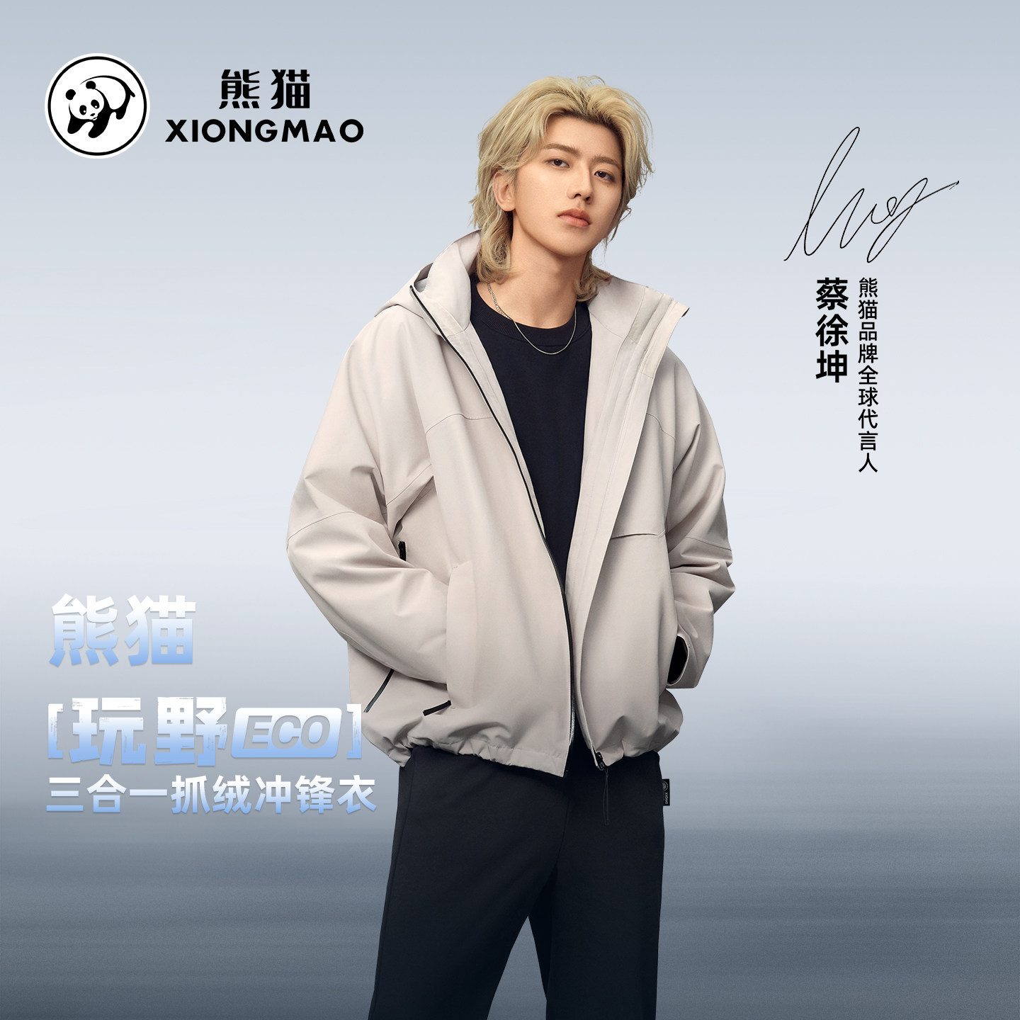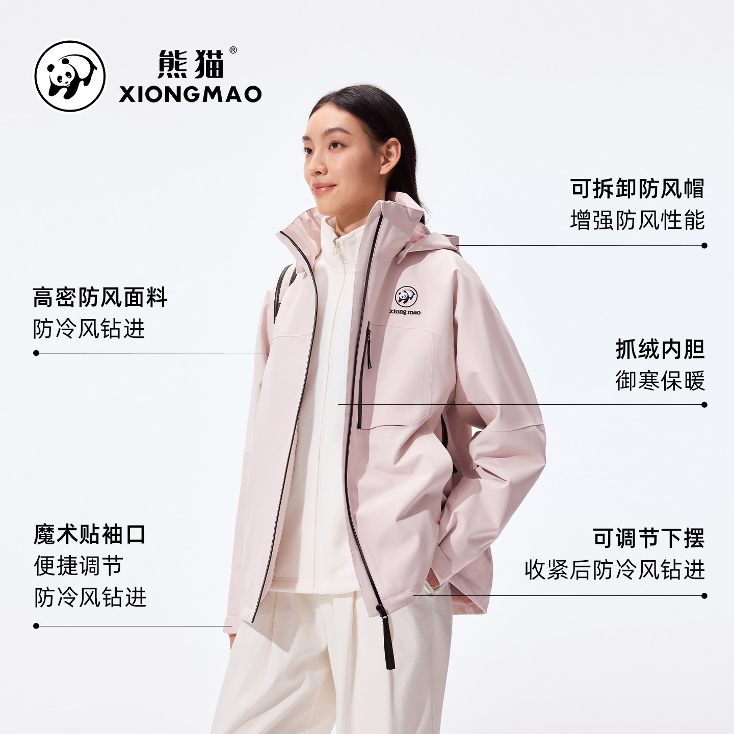 【蔡徐坤同款】熊猫三合一冲锋衣外套女2025新款防水风保暖骑行服