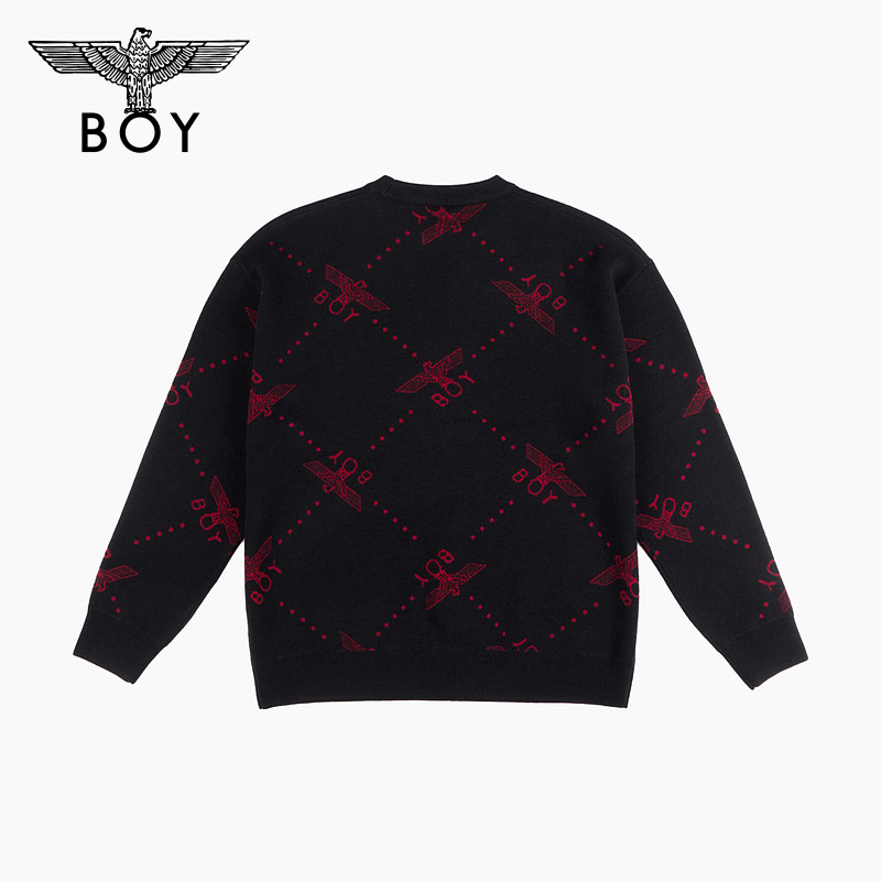 BOYLONDON春季提花潮牌毛衣黑色男女款圆领套头毛衫针织衫N60908
