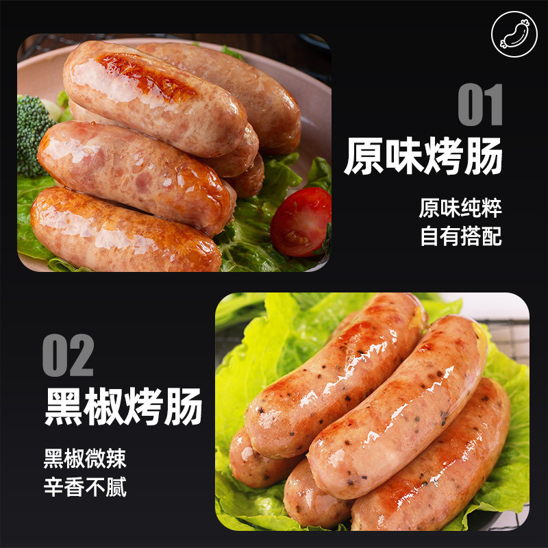 皇家小虎火山石烤肠纯烤肉肠香肠热狗地道肠黑椒脆皮空气炸锅食材