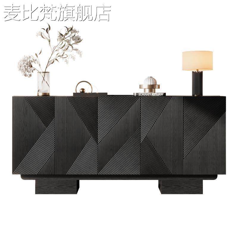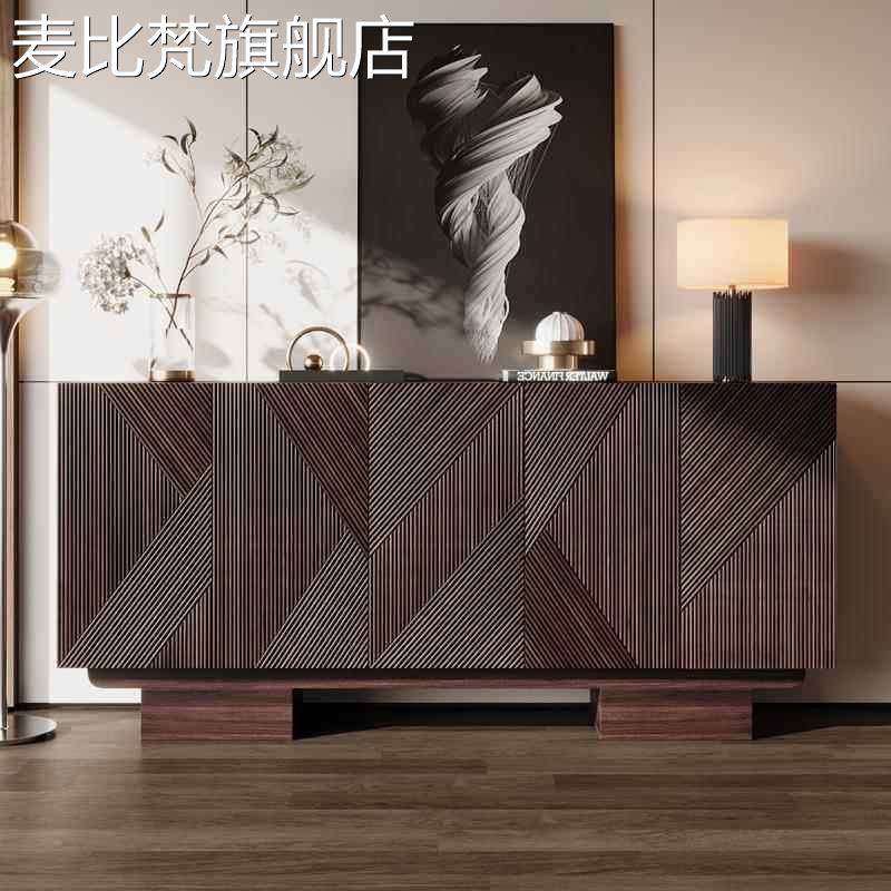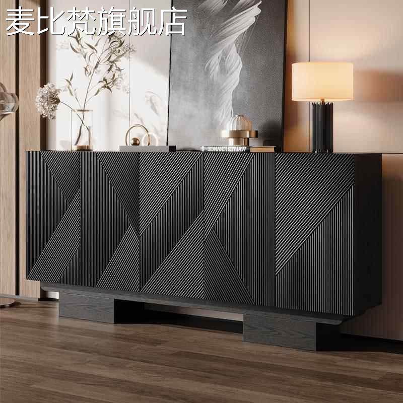 麦比梵胡桃木餐柜意式黑色中古风收纳柜别墅入户玄关柜门厅鞋柜收纳柜摆件饰品床笠拉车