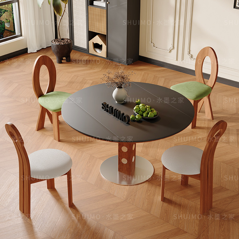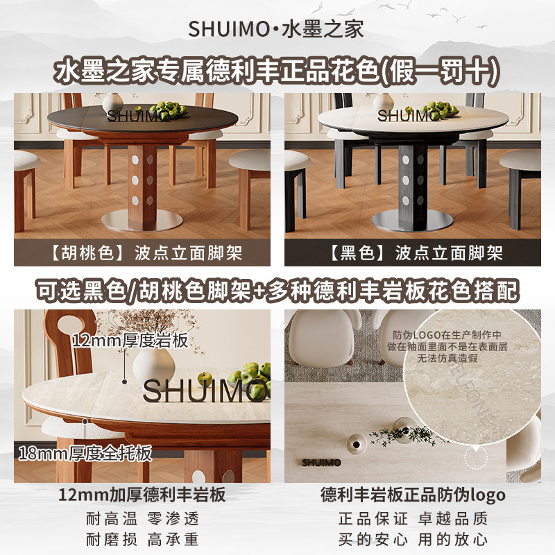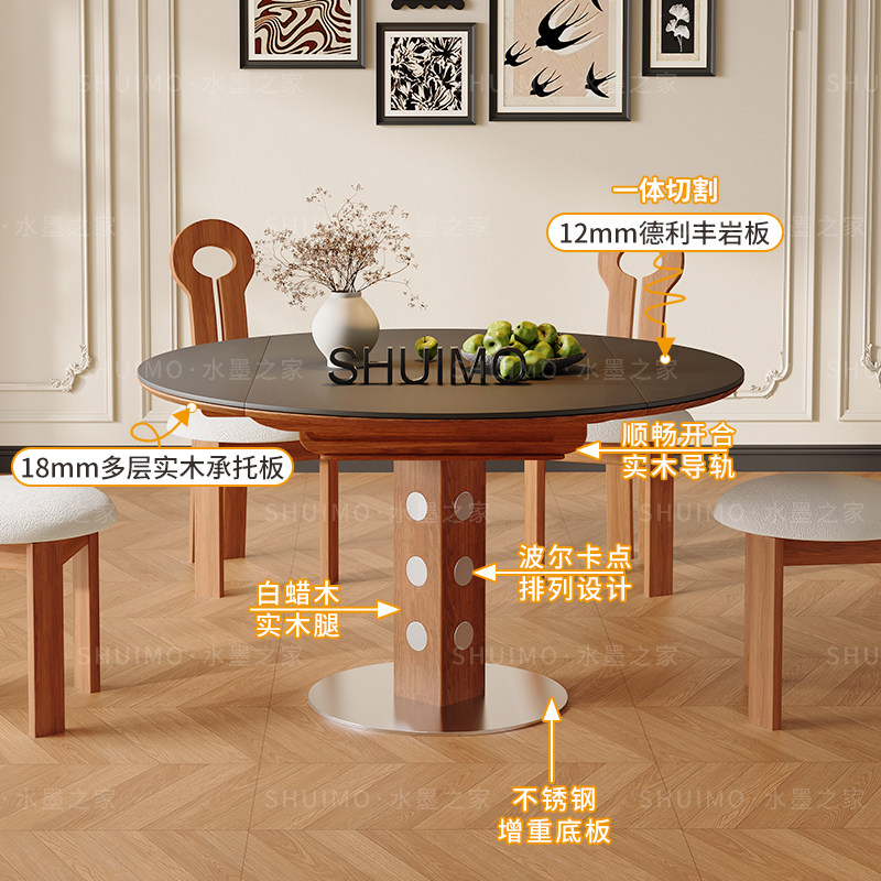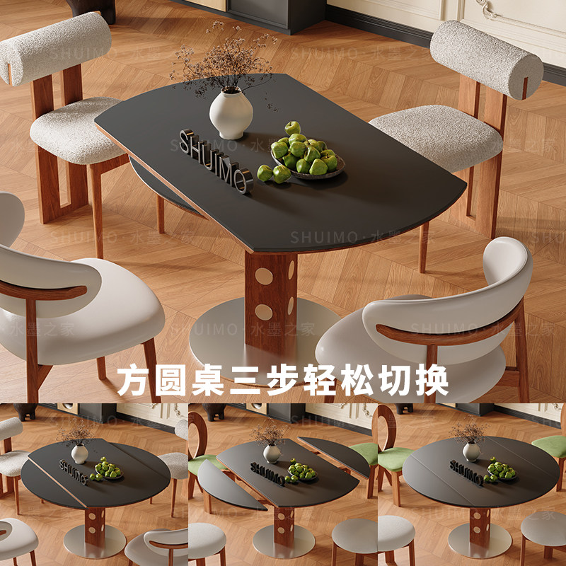 德利丰洞石岩板伸缩餐桌家用小户型实木包豪斯折叠桌方圆两用饭桌