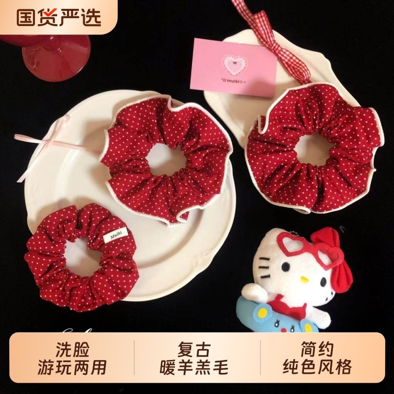 轻奢肥肠圈复古风红色头饰港风配饰红色发圈双马尾发圈高颜值小众