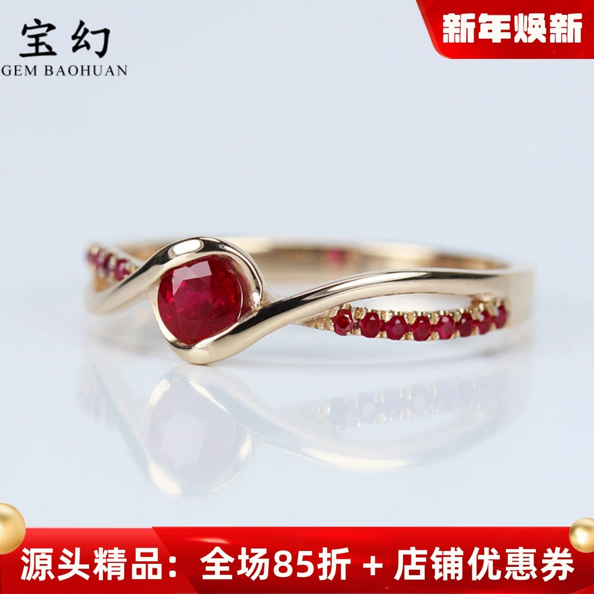 18k玫瑰金天然鸽血红宝石时尚扭臂戒指 正红圆形镶钻指环排戒尾戒