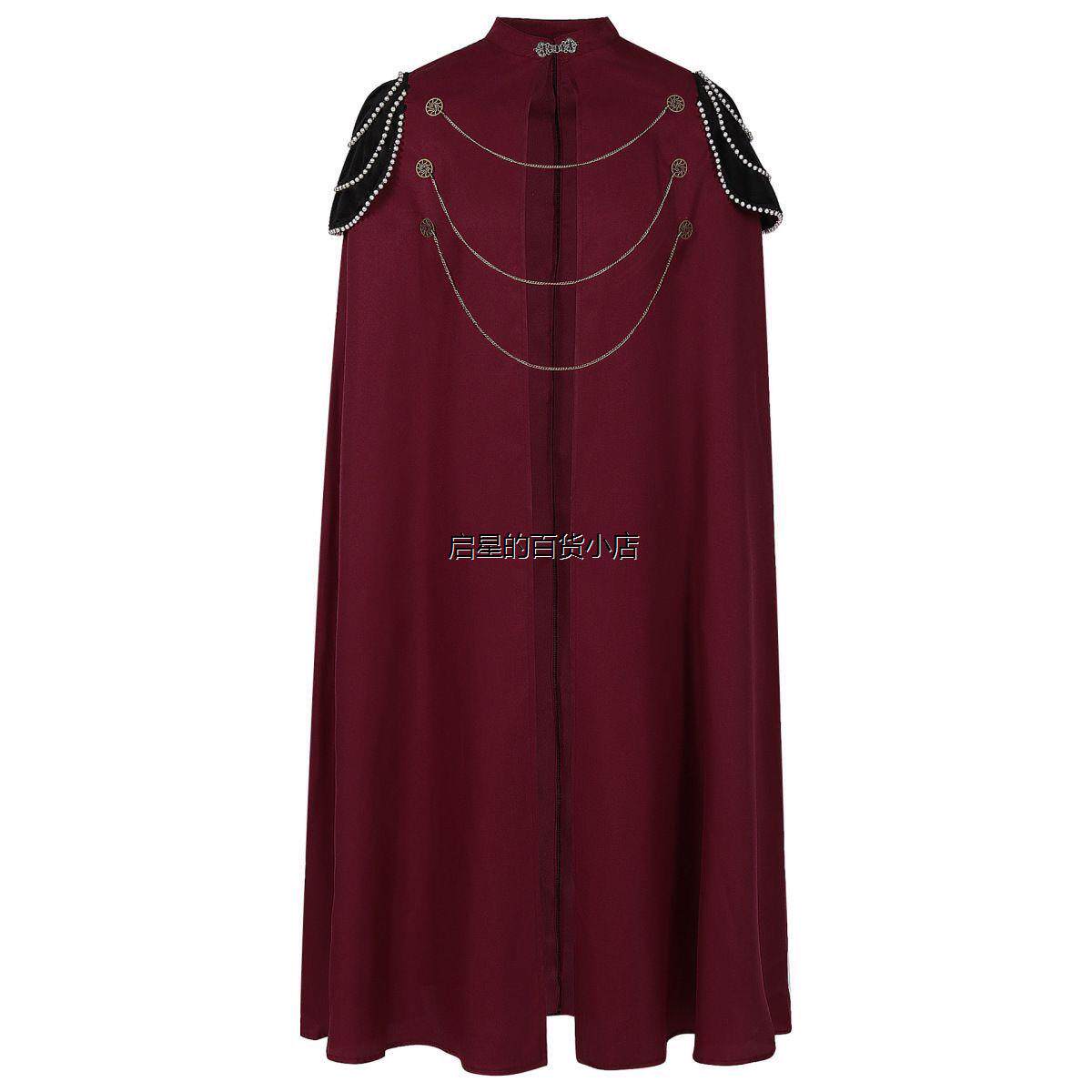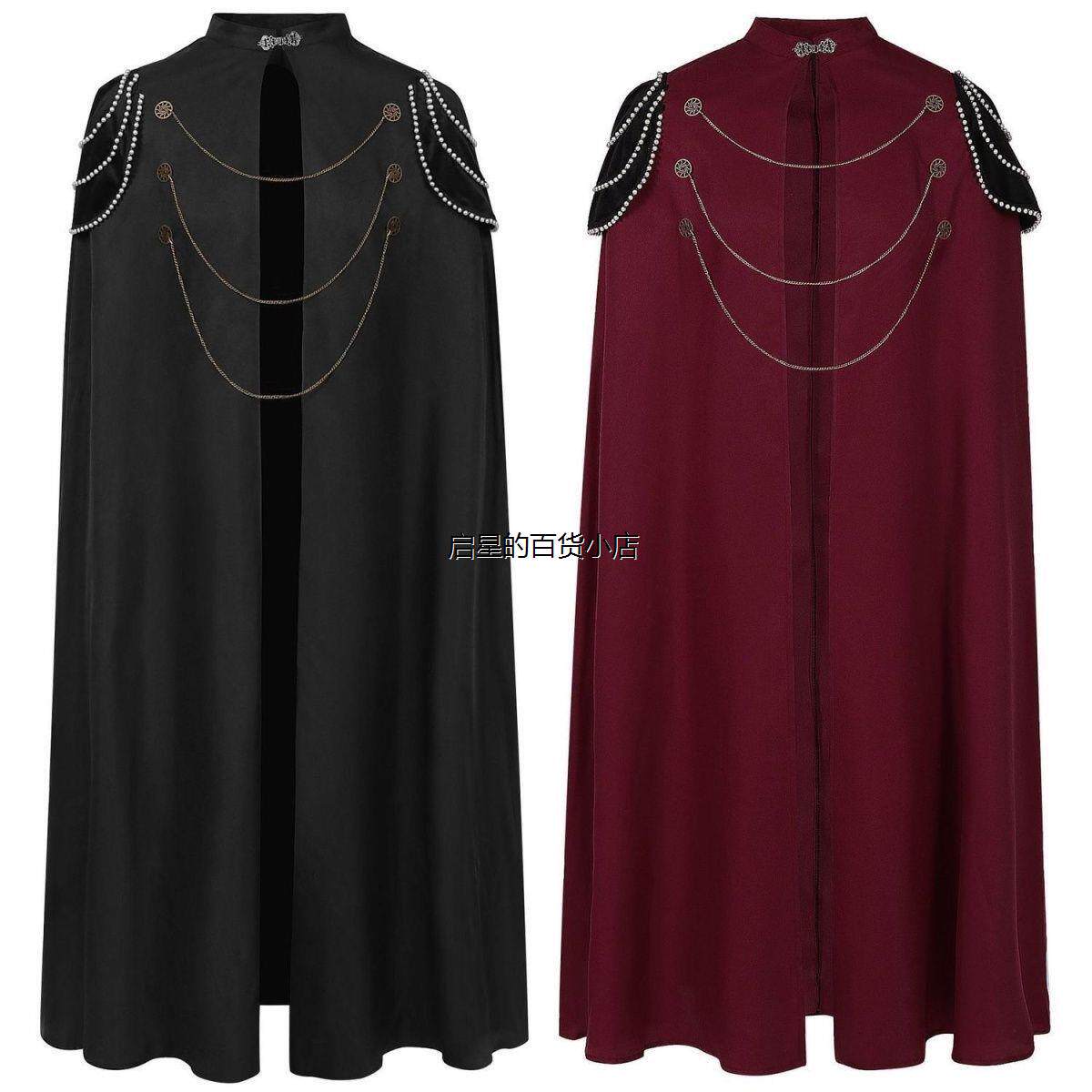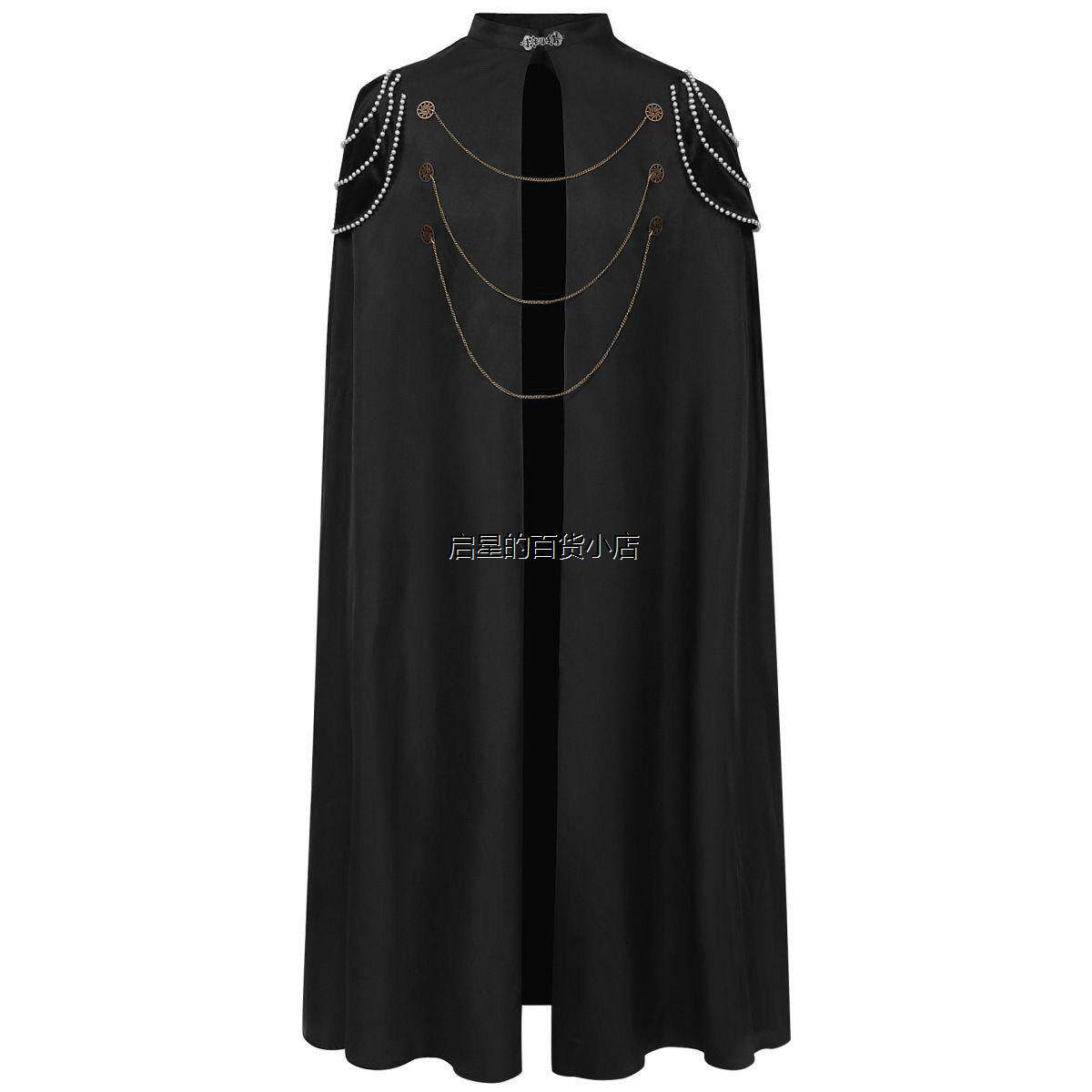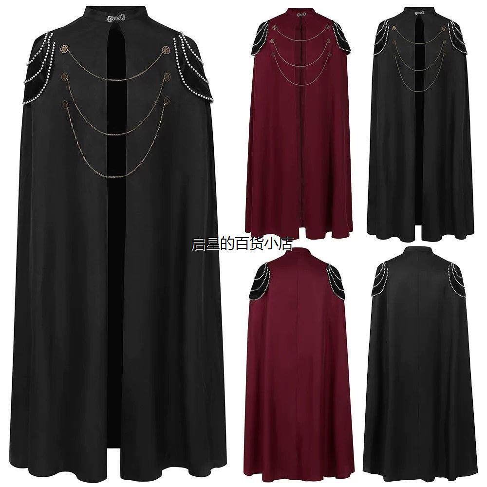 中世纪欧洲皇家斗篷加垫肩男女复古珠帘齿轮链条连帽披风演出服