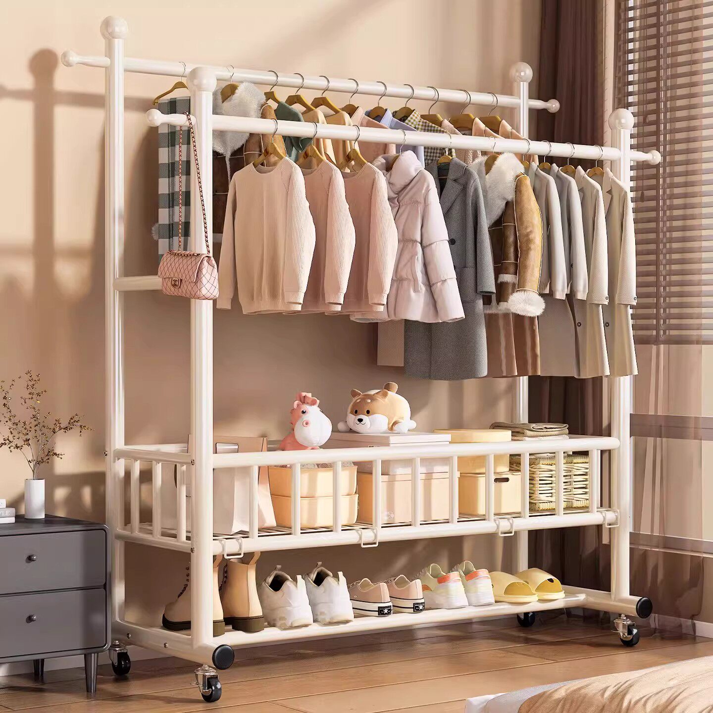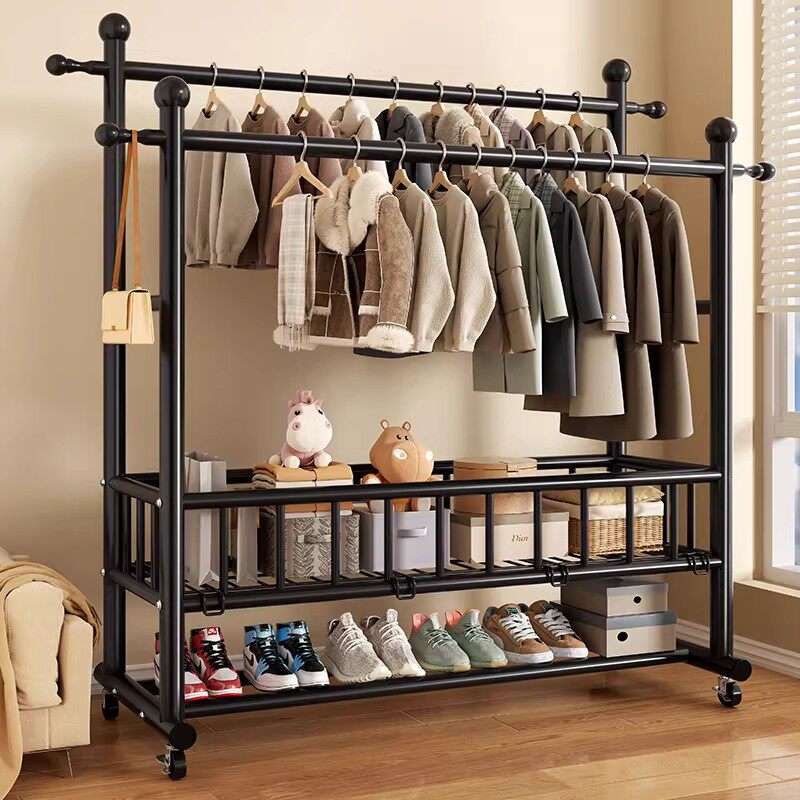 晾衣架落地家用卧室挂衣架宿舍室内双杆双层晒衣服架子简易凉衣杆