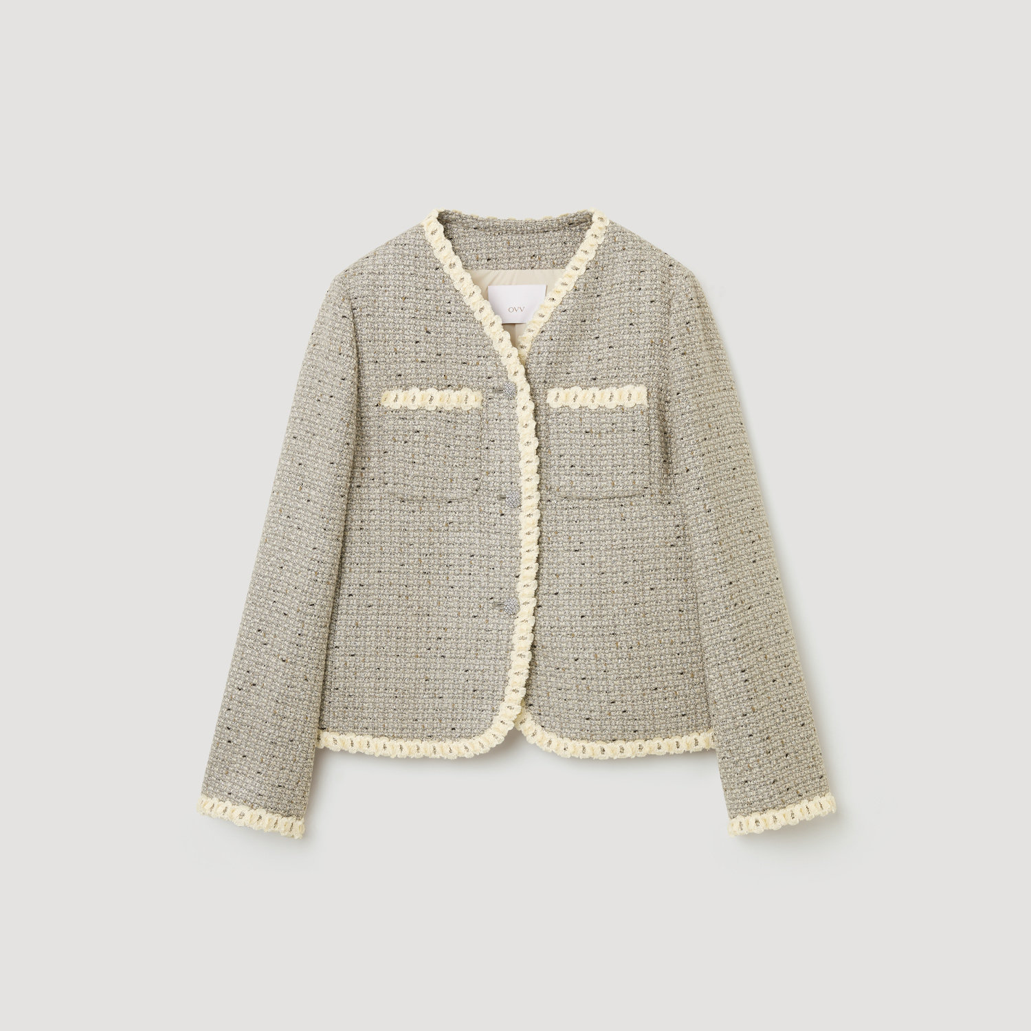 【经典粗花呢】OVVOutlet秋冬热卖女装V领保暖休闲羽绒外套