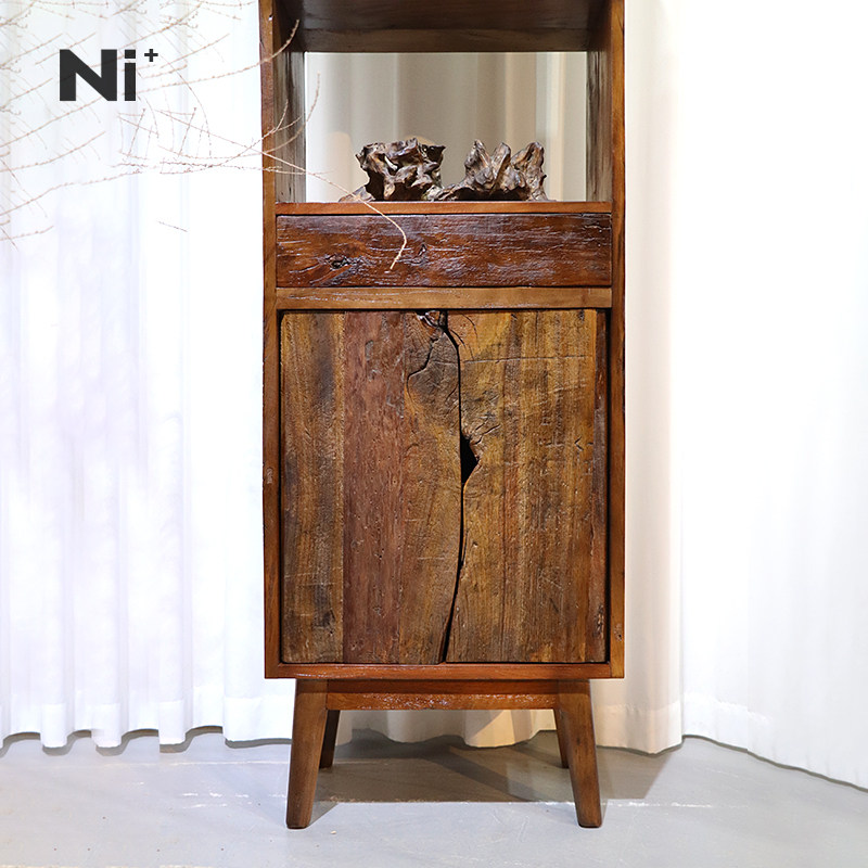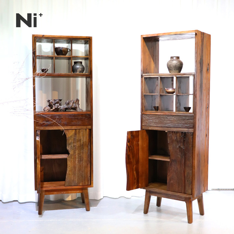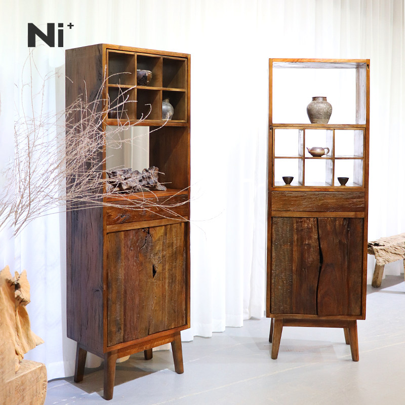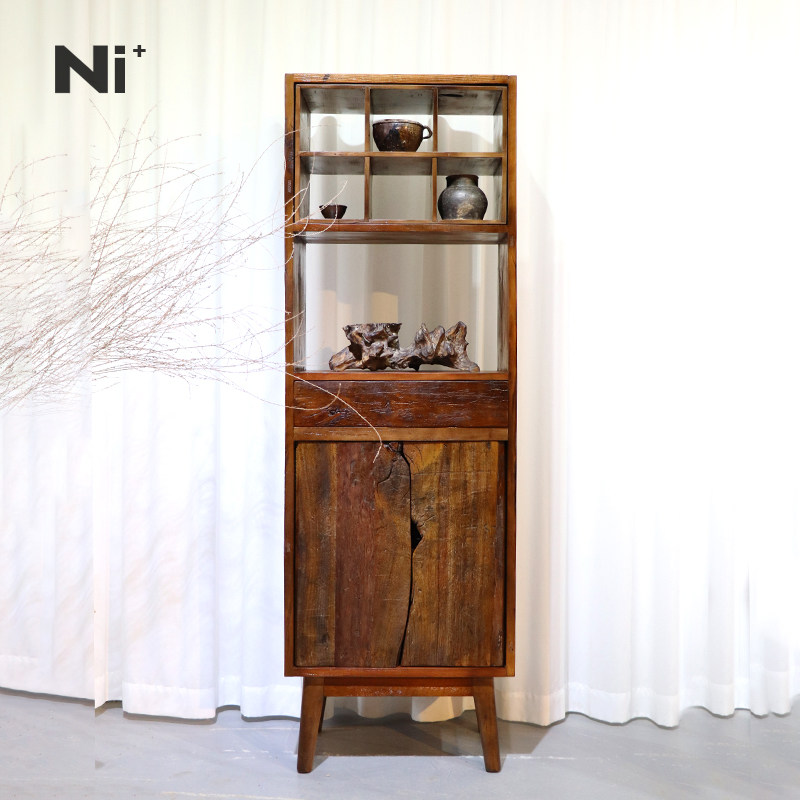 Ni尼家侘寂风边柜角柜实木茶室茶具茶杯架置物架民宿客厅双门立柜
