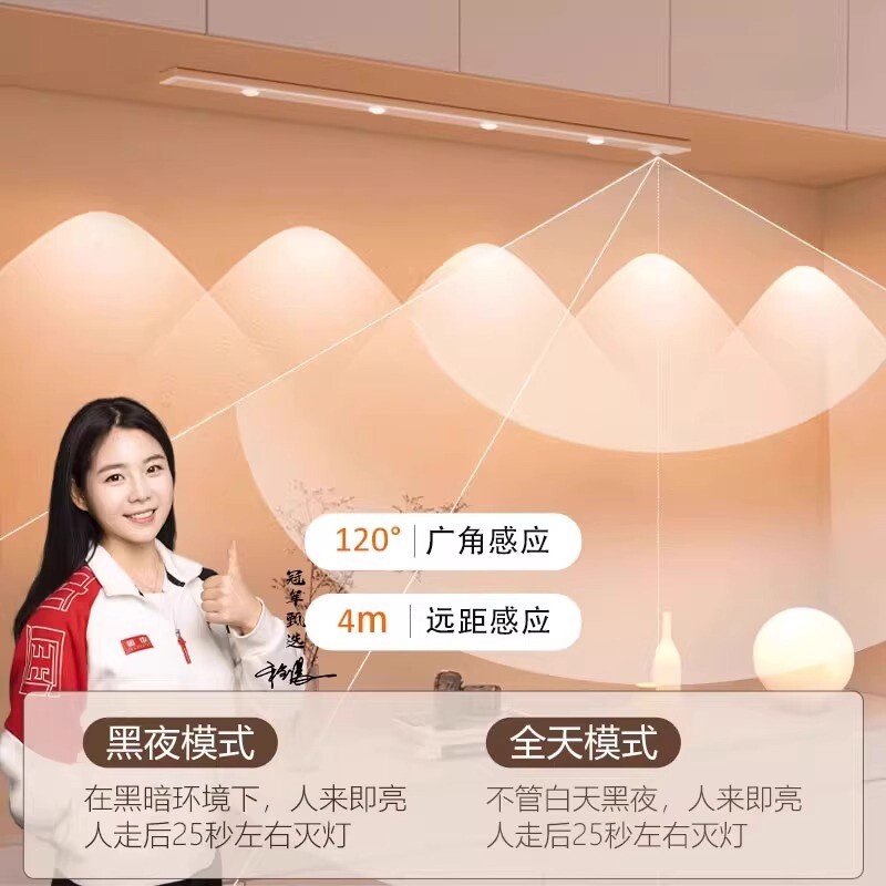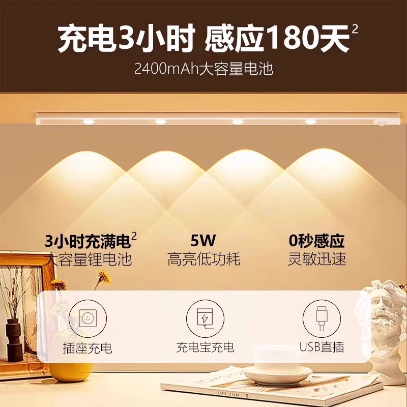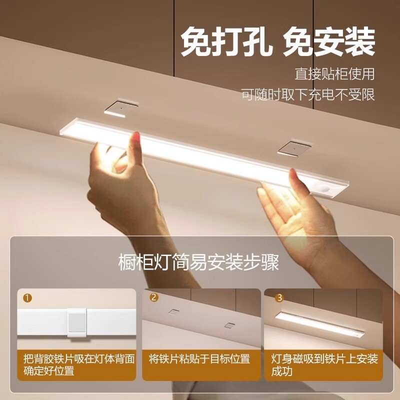 人体感应小山丘LED橱柜灯带充电式磁吸无线自粘客厅酒柜鞋柜灯条