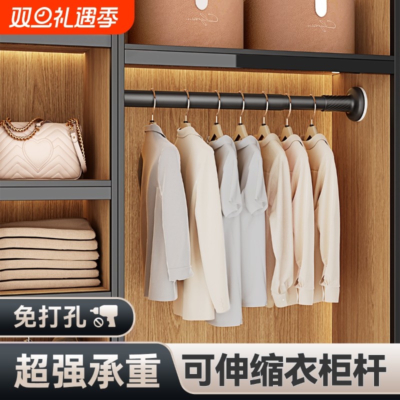 免打孔伸缩晾衣杆窗帘杆衣柜支撑架卫生间挂衣不锈钢升收缩浴帘杆