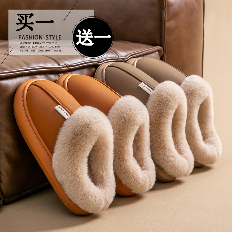 冬季居家日用买一送一棉鞋保暖加绒外穿厚底防滑棉拖防水棉拖鞋女