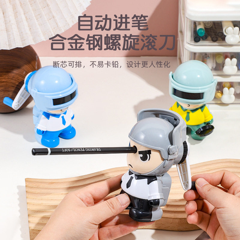 吃鸡人偶削笔机自动进笔儿童防夹手卷笔刀儿童文具现货