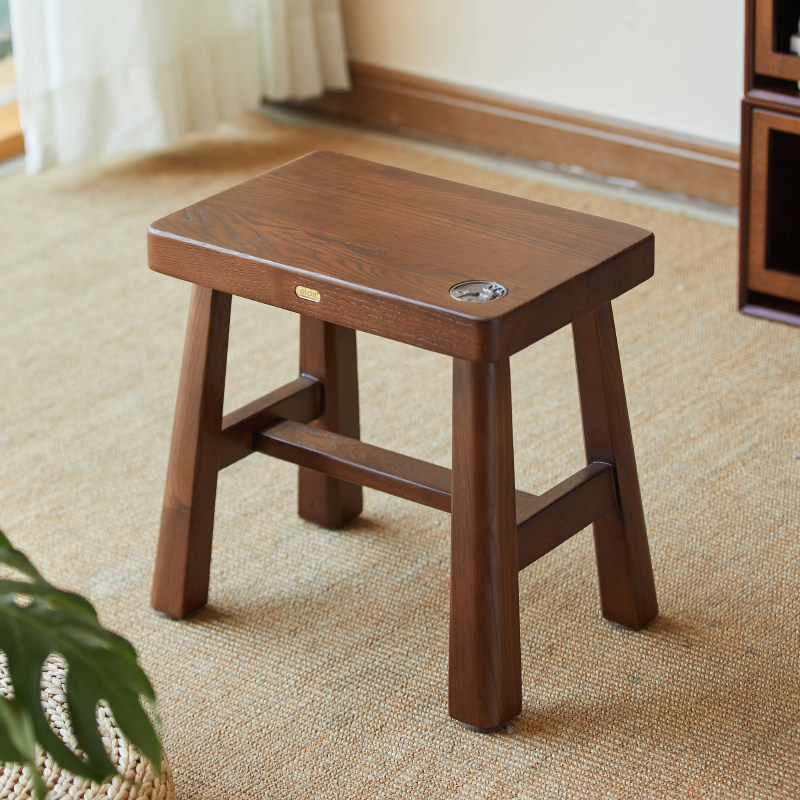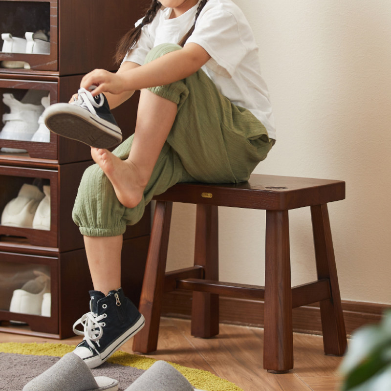 美式复古实木小板凳家用门口现代简约换鞋凳客厅白蜡木矮凳子椅子
