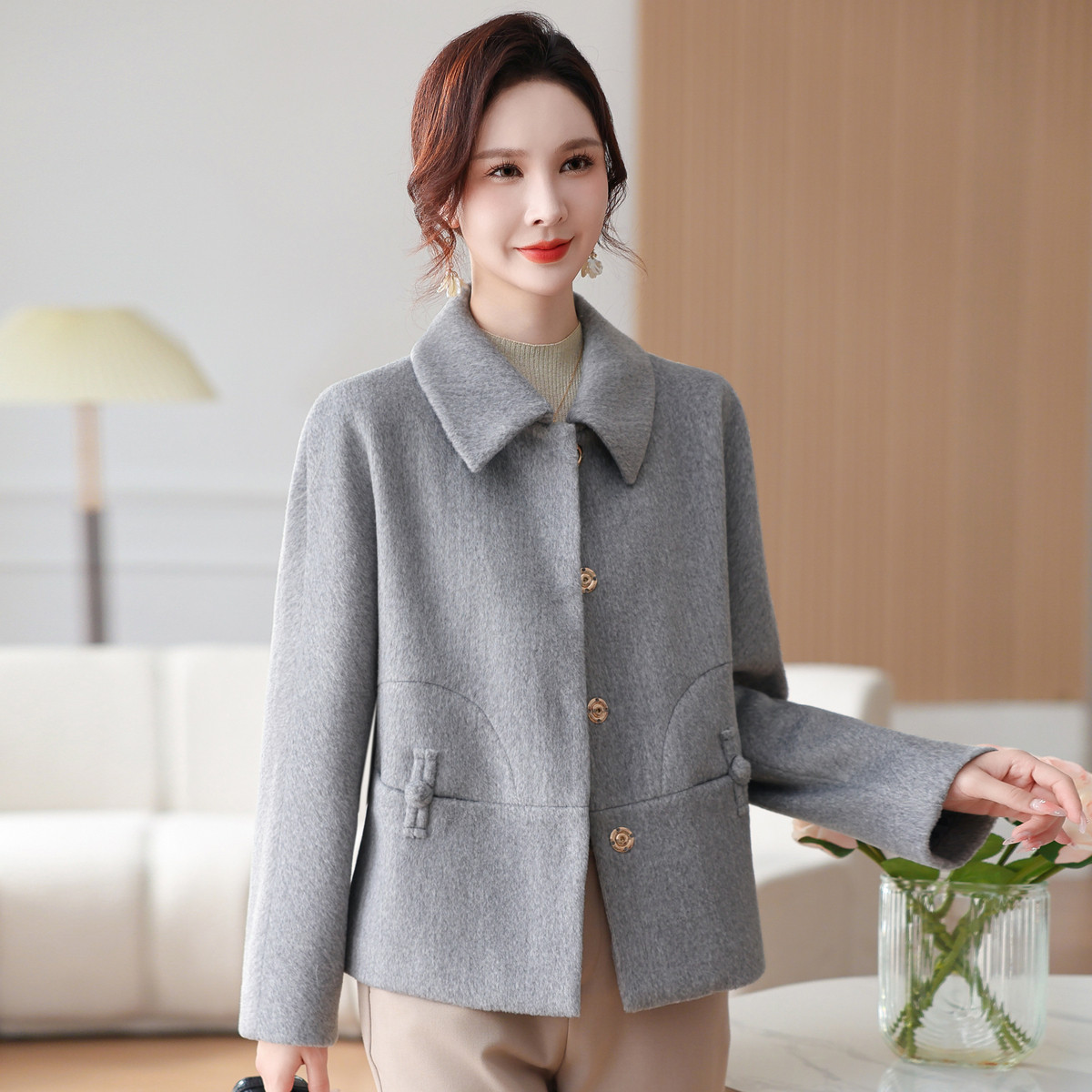 雪中飞2026春新款女士妈妈短款休闲毛呢外套优雅高贵时尚宽松洋气