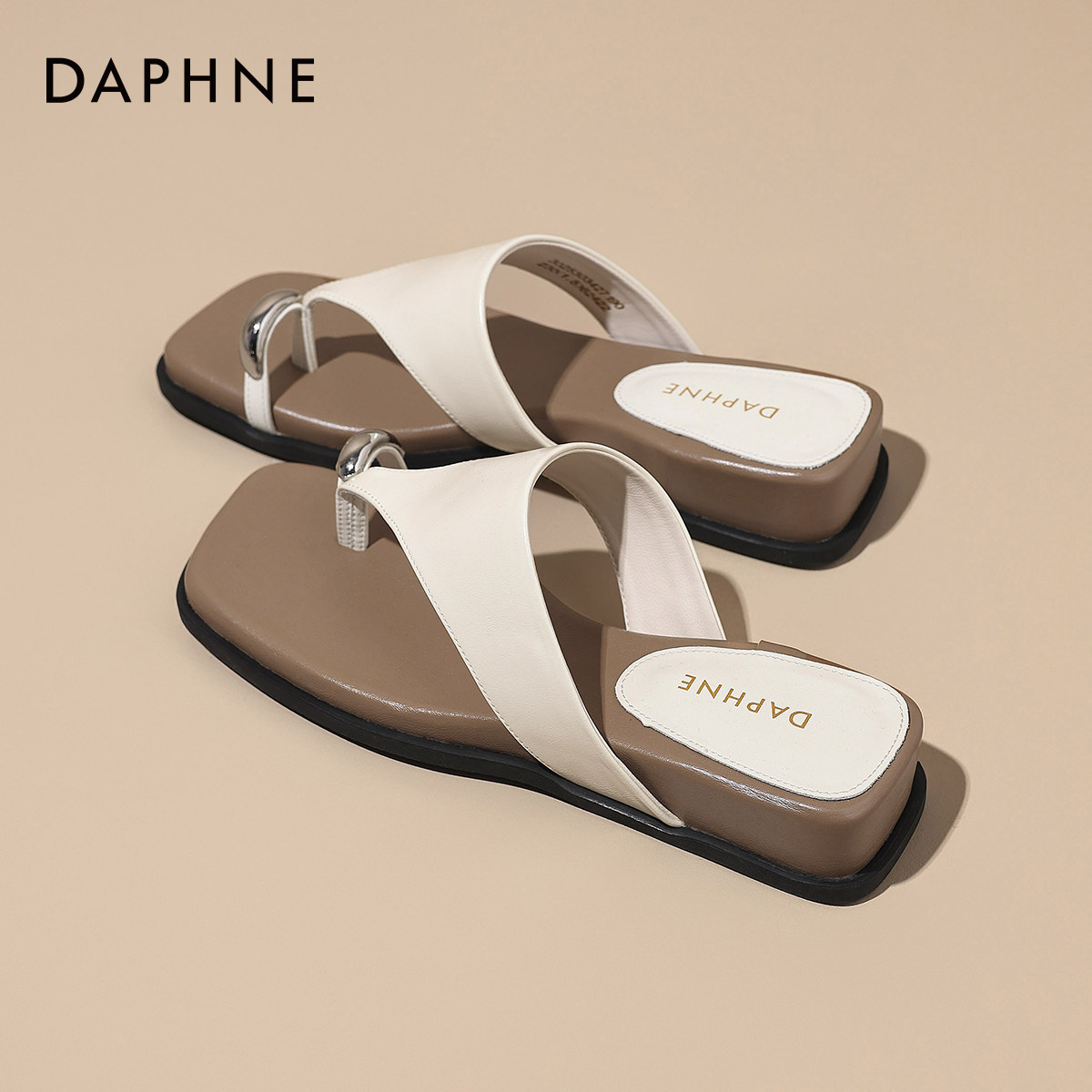 达芙妮夹趾拖鞋女2026新款春夏坡跟套趾沙滩凉拖鞋外穿厚底人字拖
